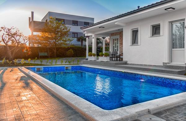 The beautiful Villa Rozzaria offers everything you could want on a dream vacation: near the beach, close to all amenities (market, bus station, airport, restaurants), a quiet neighborhood and hospitable hosts. The place is ideal for anyone, you can enjoy historical sights, nature, beautiful sea, etc. The house has a heated swimming pool, large beautiful garden, modern interior and exterior.