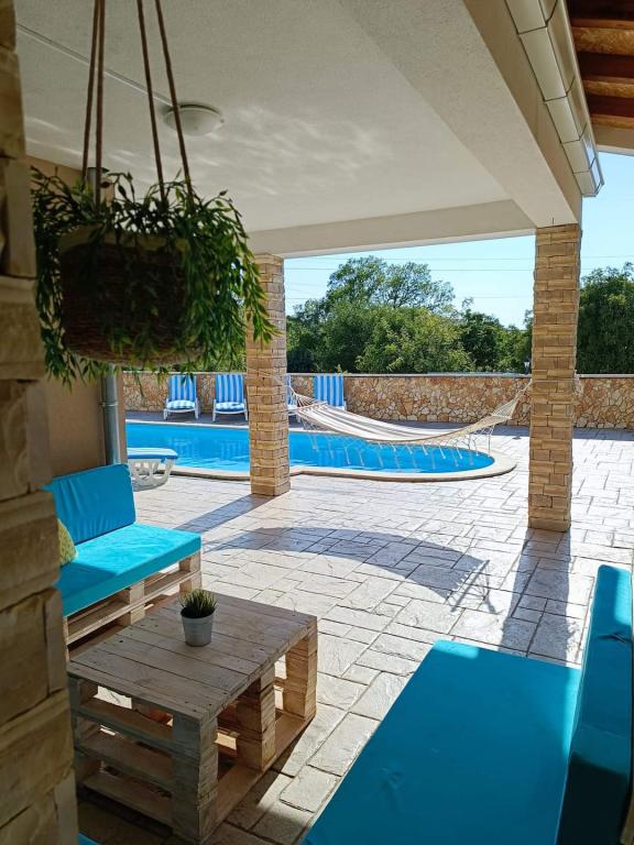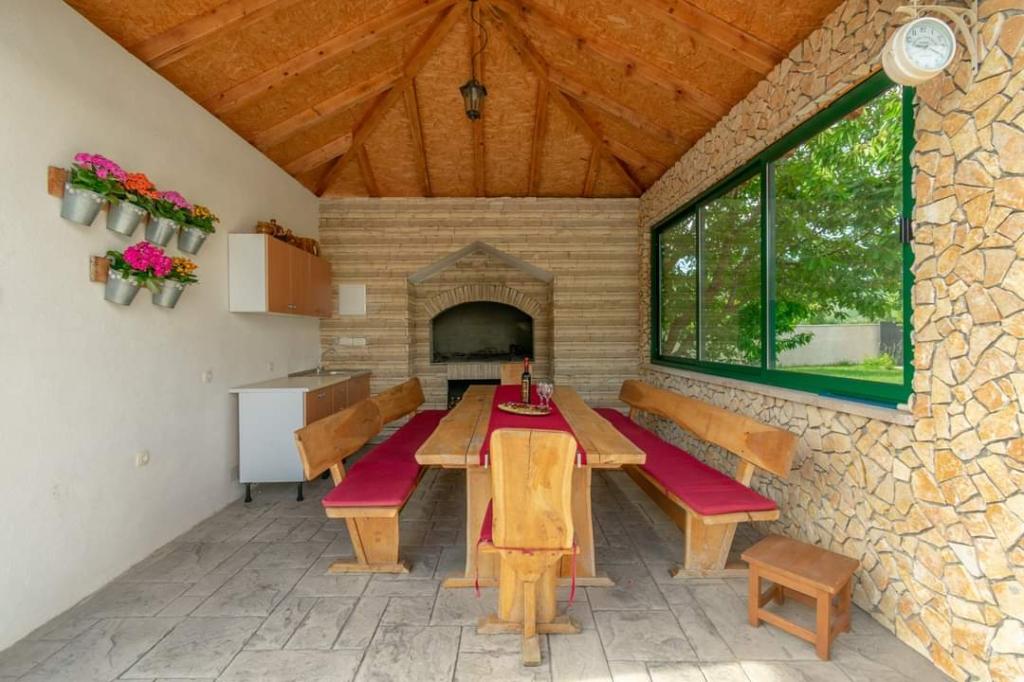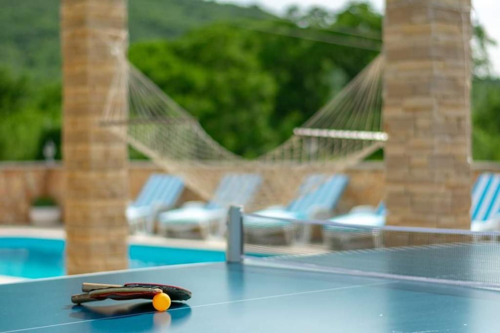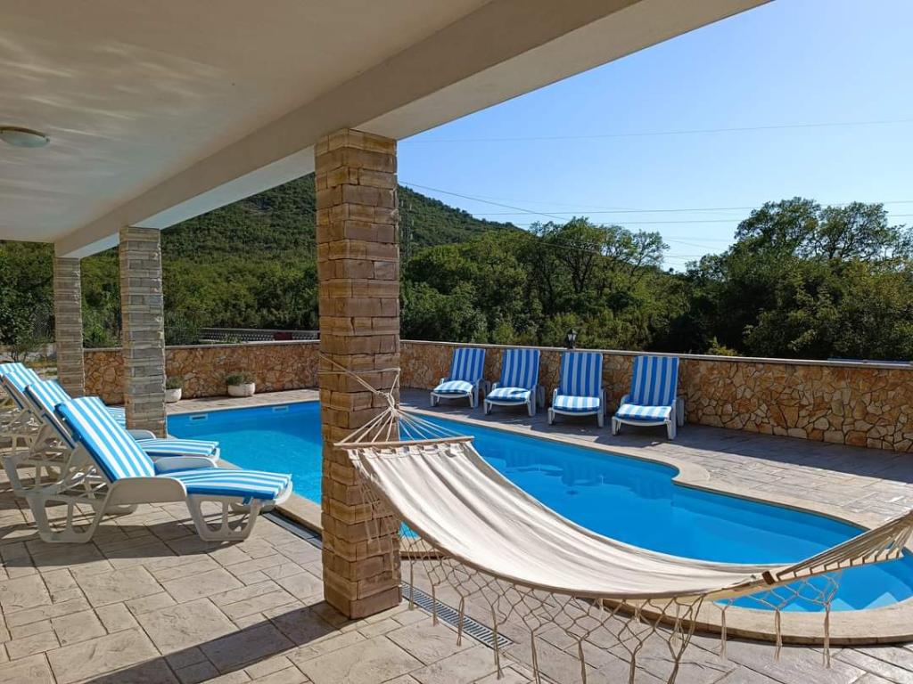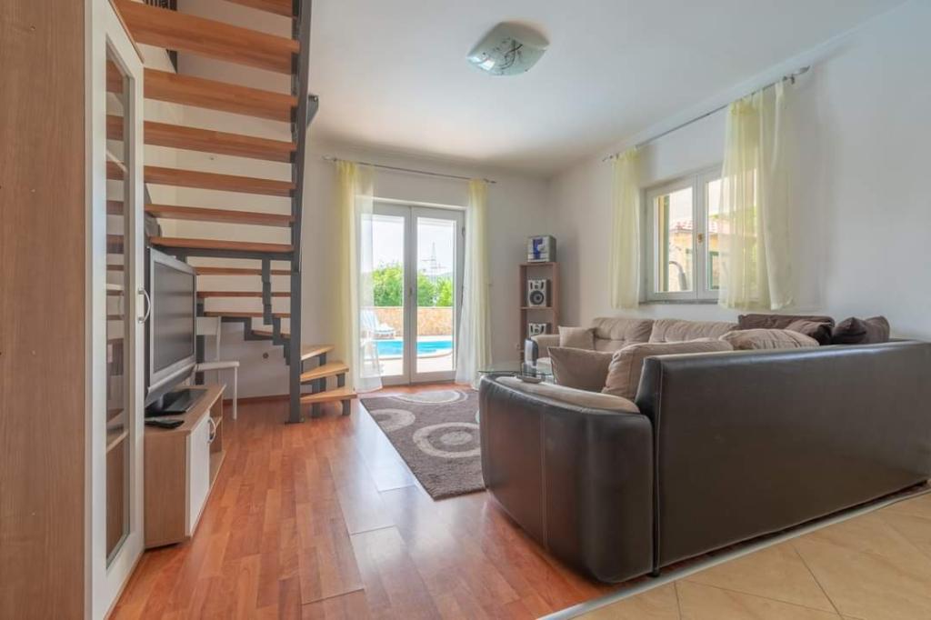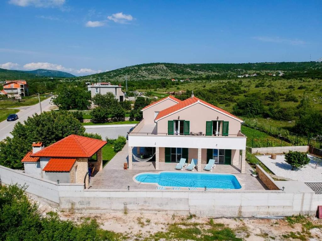 The holiday house Villa Renato is located in the beautiful small town of Konjsko, 15 km from Split. The villa is located on an estate of 1800 m2 with a swimming pool, barbecue, ballot box, table tennis and exercise equipment, and a covered terrace for enjoyment. The house itself is suitable for 8 people. It has 4 bedrooms for 2 people + a sofa bed for possibly another 2 people. The house has 3 bathrooms and one outdoor toilet, as part of the gazebo and pool. The nearest shop, cafe bar and bus stop are only 400m away. The distance from the nearest city beach is about 15 km. Get to know the city of Split, Trogir, Solin, our beautiful islands and the sea, National Parks, all in a one-day trip around the area. Split airport is 30 km away. In the Villa, enjoy privacy, peace and a relaxing atmosphere...
