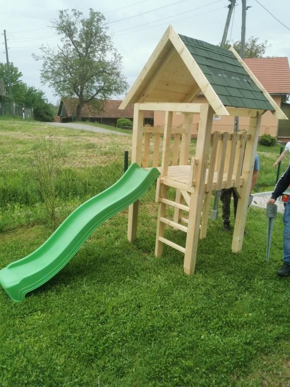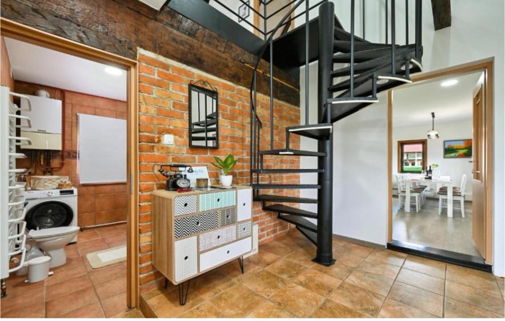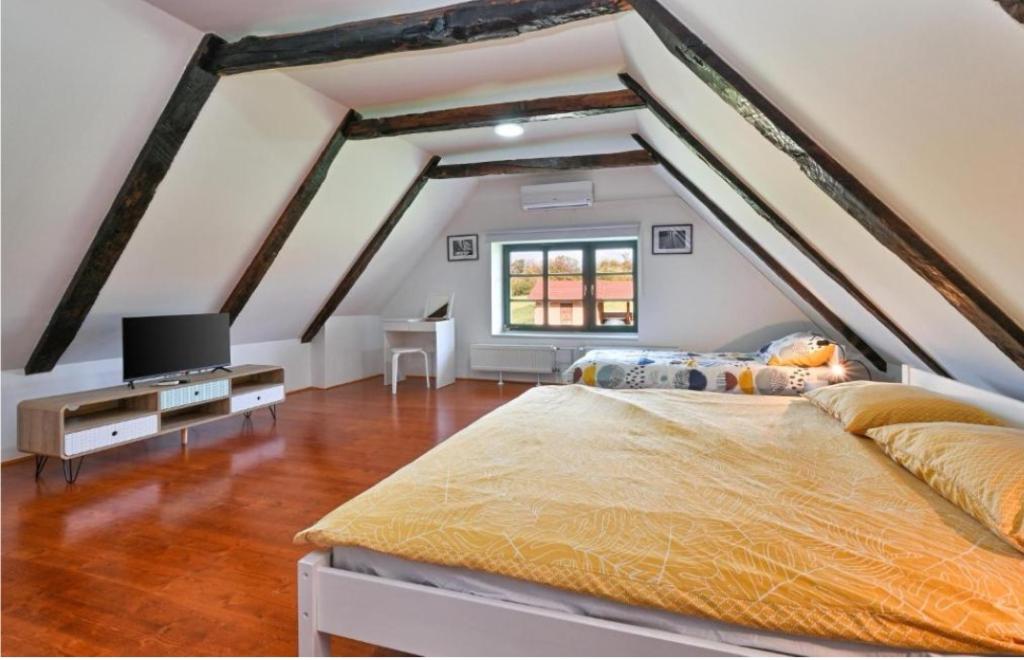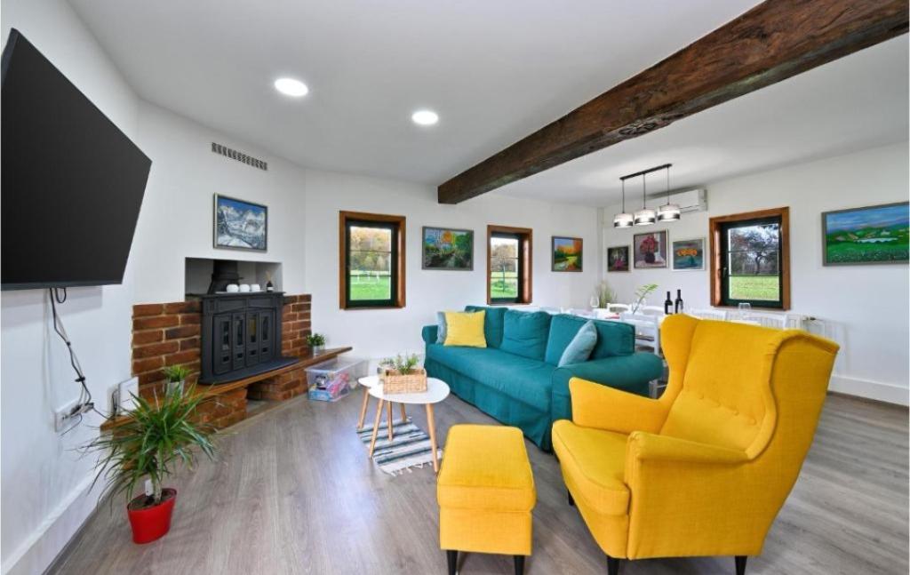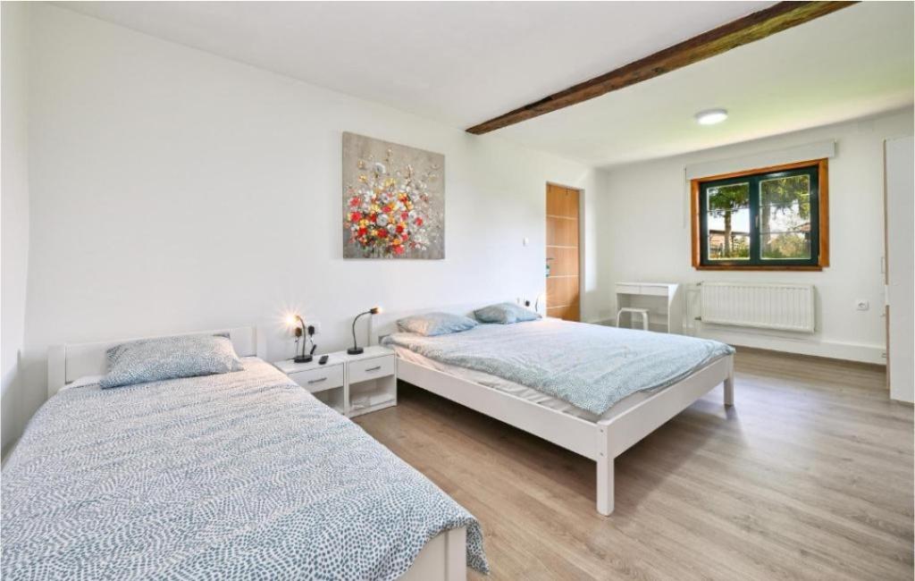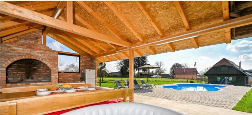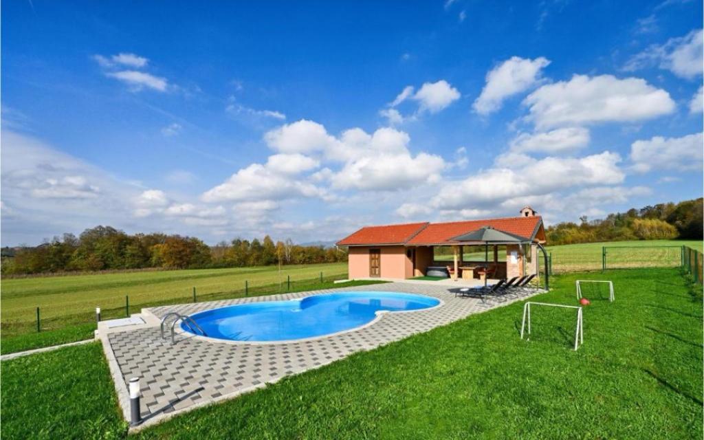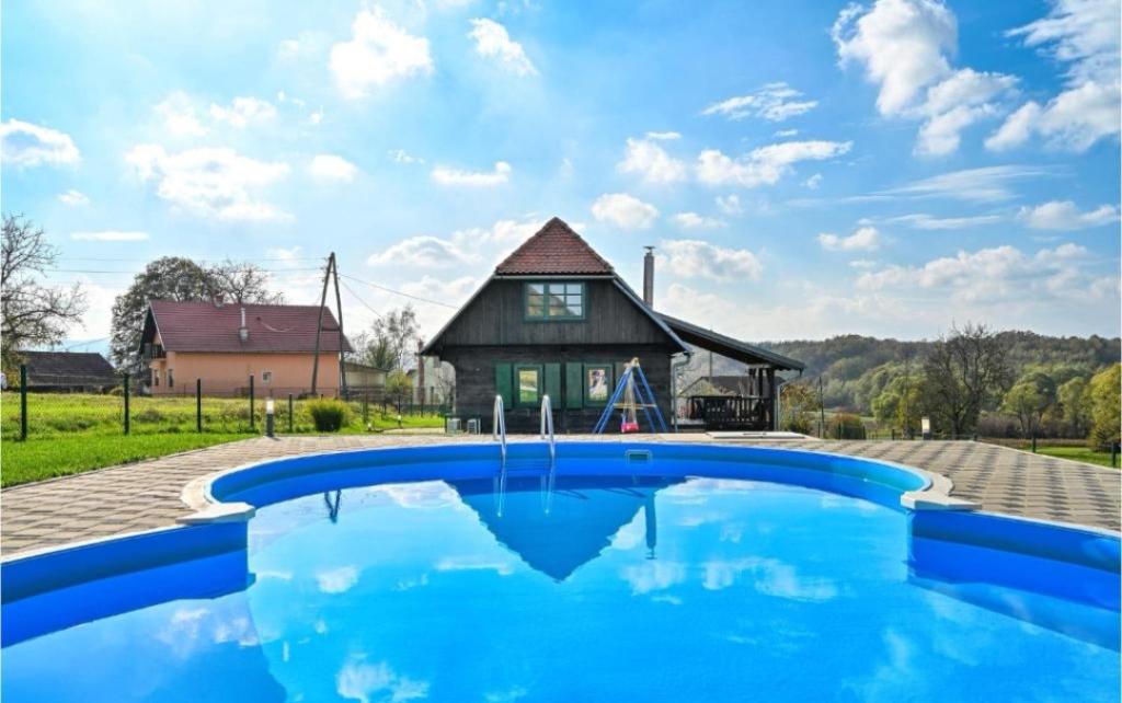 Completely and modernly renovated villa with pool and jacuzzi. The villa is located in a picturesque landscape, surrounded by untouched nature and forests. The quiet location guarantees a peaceful and relaxing vacation. The yard is fenced and has free parking for up to 4 cars. The facility can accommodate 8 guests in 3 air-conditioned bedrooms. Guests have at their disposal 2 bathrooms in the house, one bathroom by the pool, dining room, living room, two kitchens, two terraces, barbecue, outdoor shower, darts, table football, free wifi, swings, climbing frame with slide, Netflix...