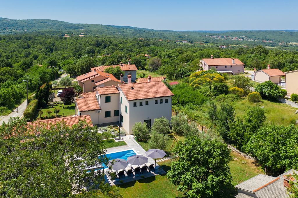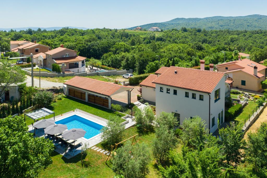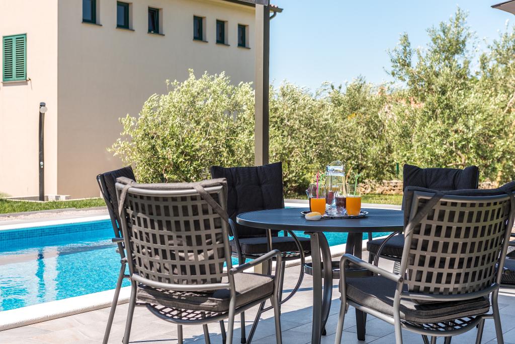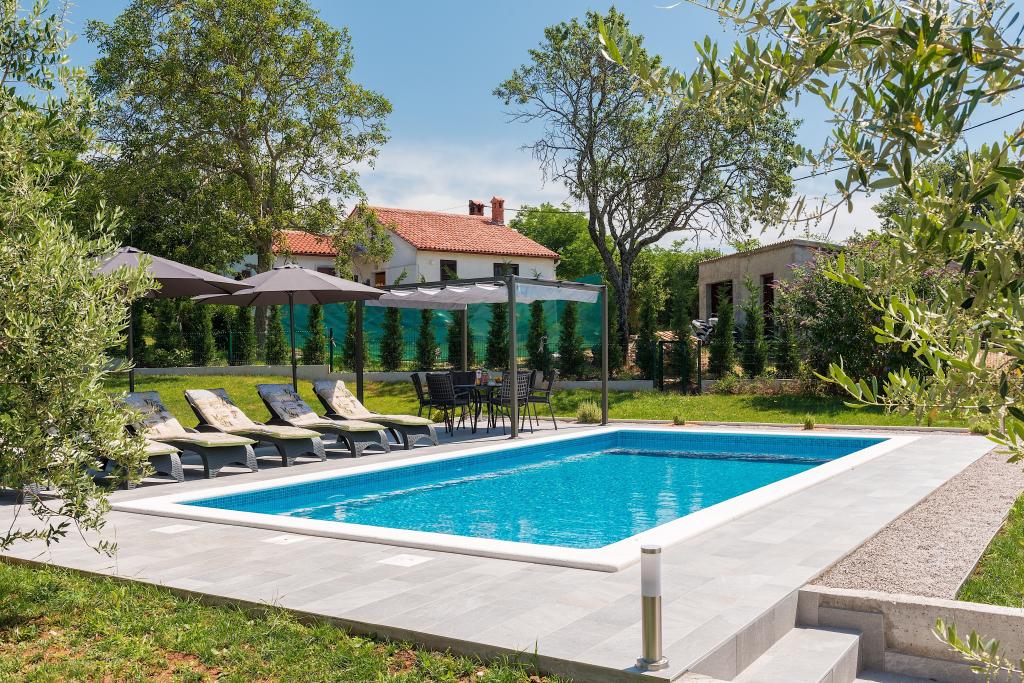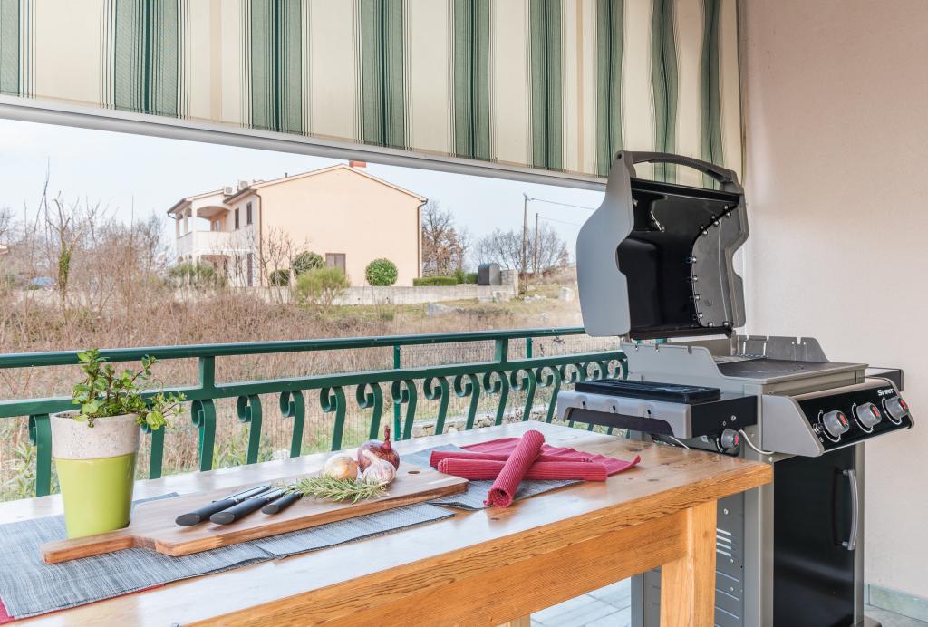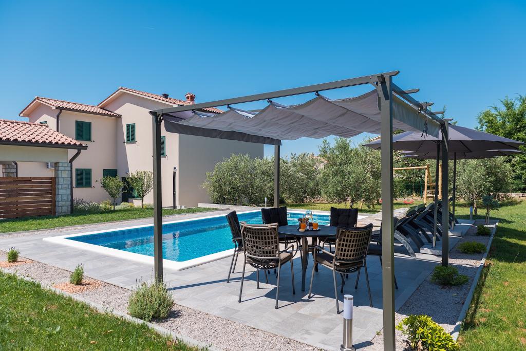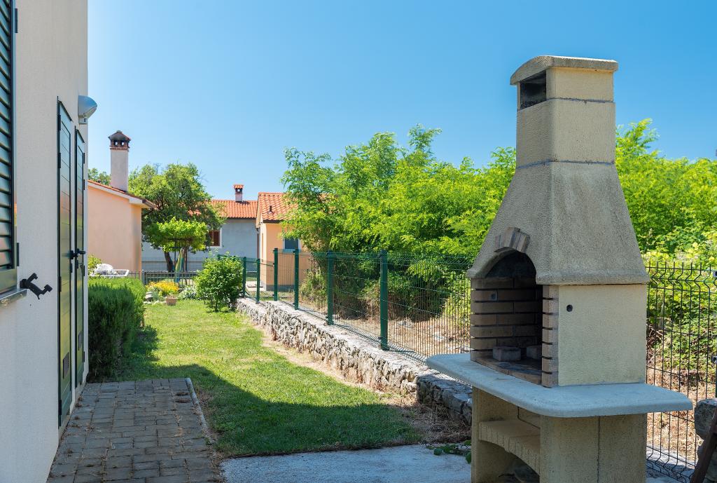 Our holiday rental home of 116 m2 is located in a residence of 1800 m2. It is a delightful, relaxing place in the quieter area which guarantees tranquility for a well deserved holiday. Only 3.3 km from the Old Town of Labin and 4 km to the nearest beach, the property offers a ground floor apartment which has recently been creatively designed into a stylish home, providing every convenience of home. Perfect for families with children to enjoy the benefits of a large swimming pool, sun terrace, the shades of olive and fig trees and lots of space to play around a fully fenced garden. The house can accommodate up to 6 persons in 3 rooms. It offers a safe roofed parking for 3 vehicles within the property and a large seasonal swimming pool. The 28 m2 roofed terrace to be reached through sliding doors in the dining room opens your door to the world of grilling, with a 2 burner gas grill and convenient side tables for serving trays. The perfect size to grill up a couple of burgers, chicken, steaks or fish. In case you prefer a garden fireplace, there’s one down the terrace stairs. All the food to be enjoyed with family members around a 6 seat table on the shaded terrace. The peaceful mornings are perfect for joggers and reading lovers. The host lives in a house only 100 m away and is
