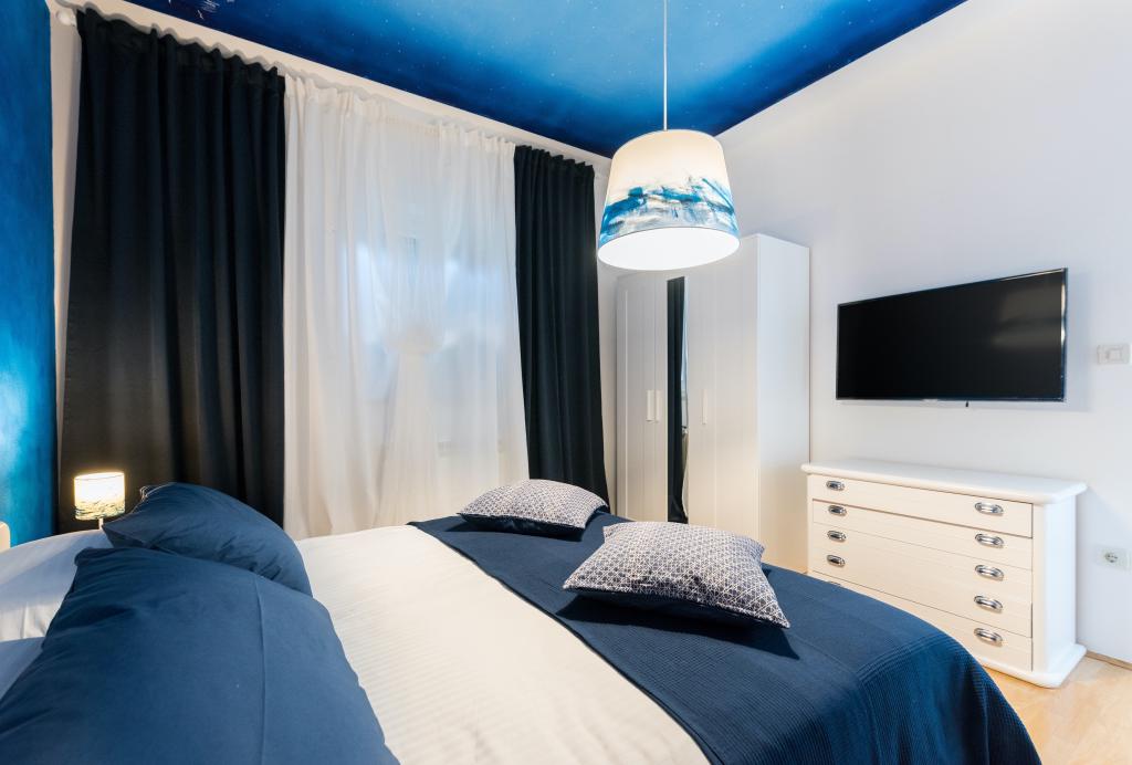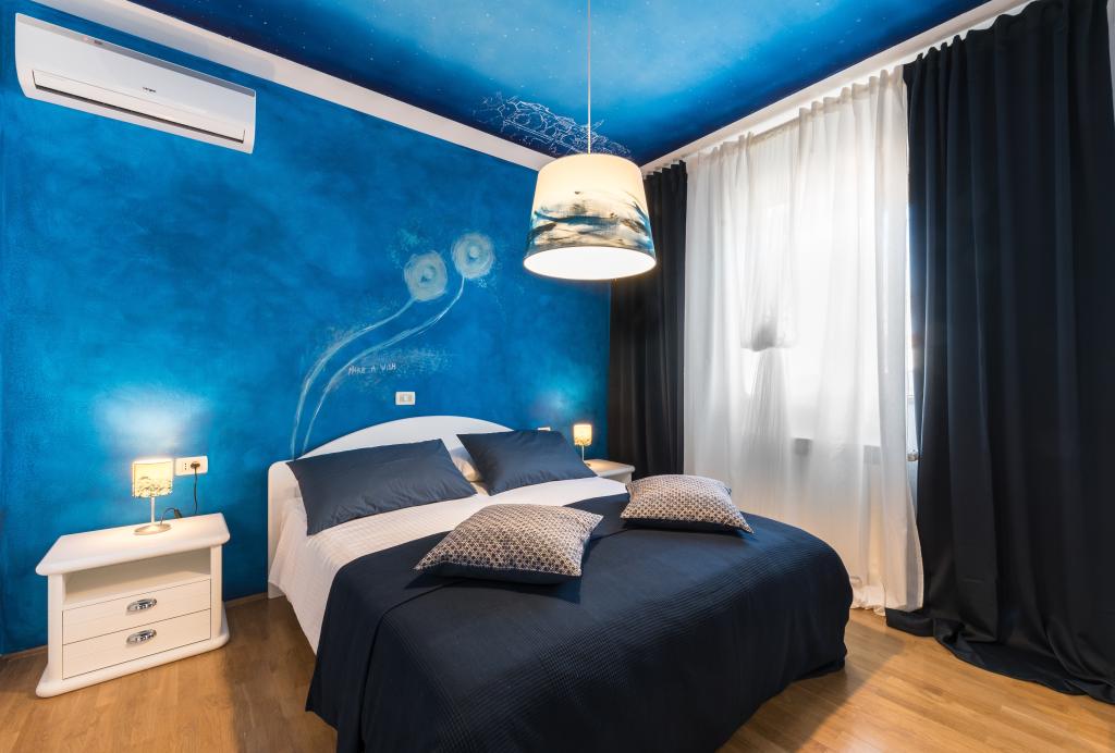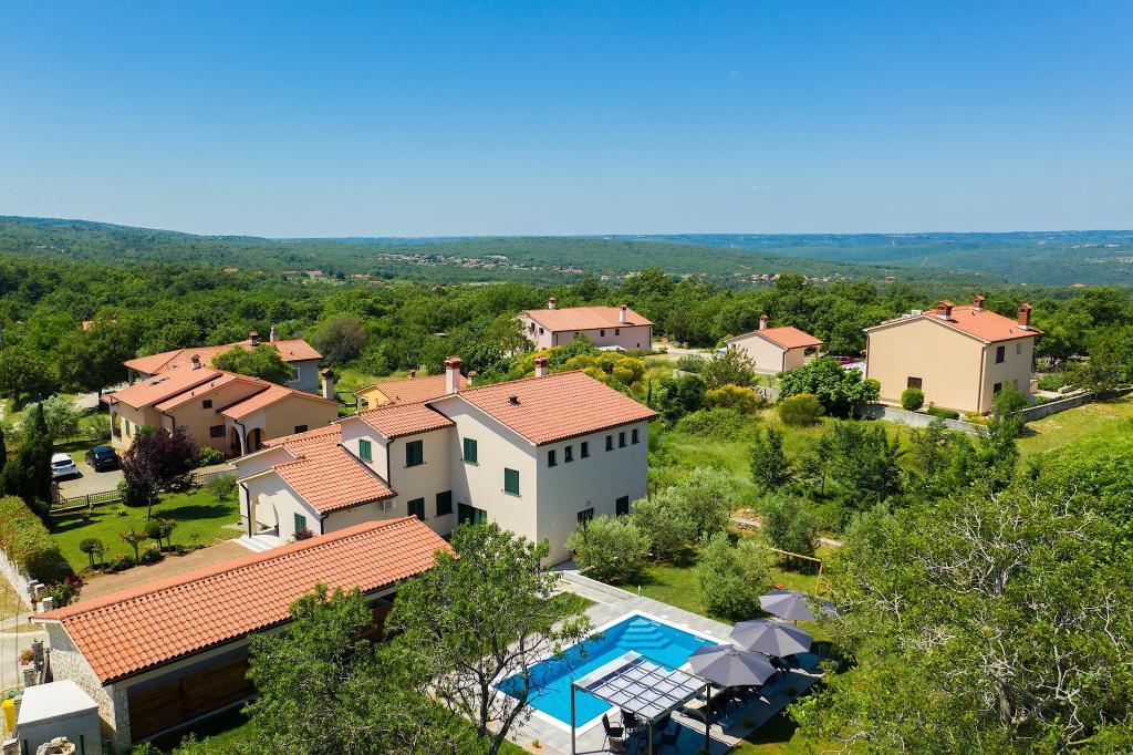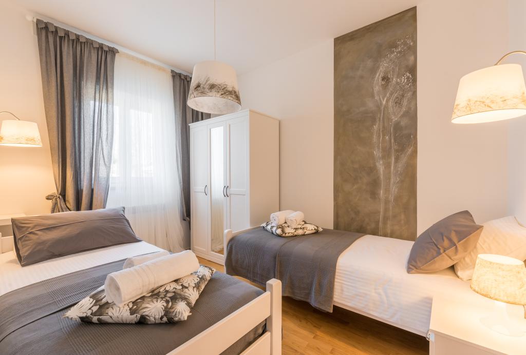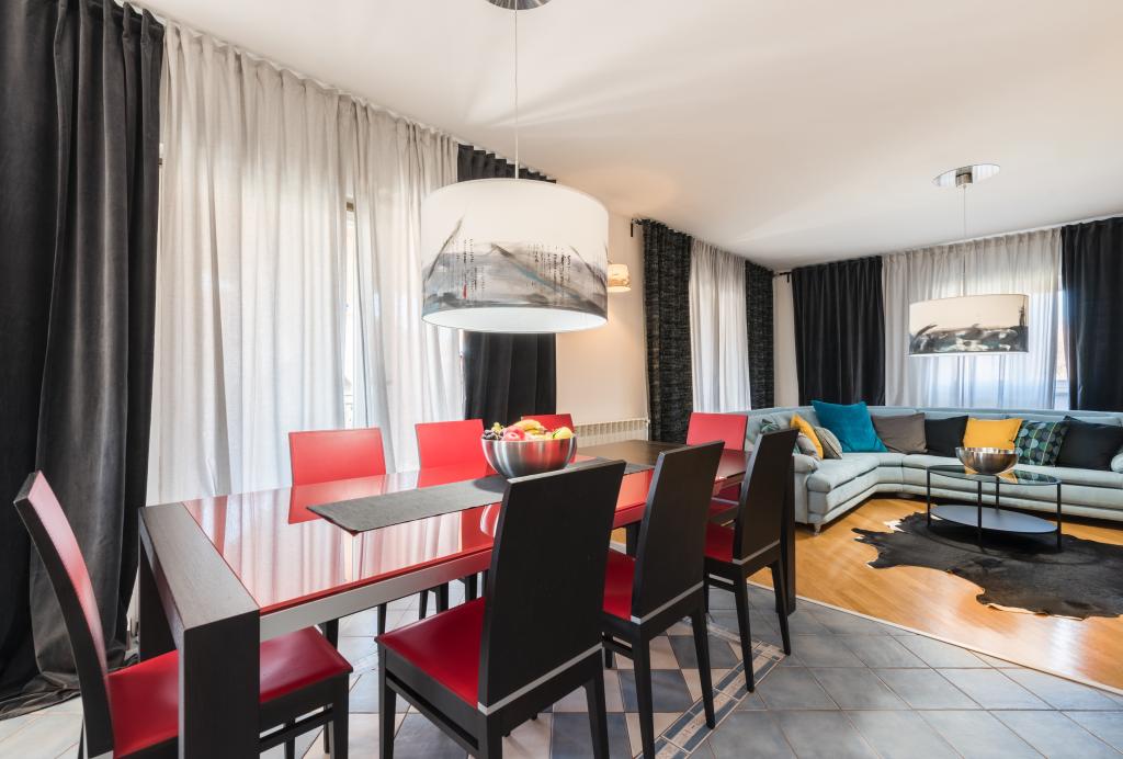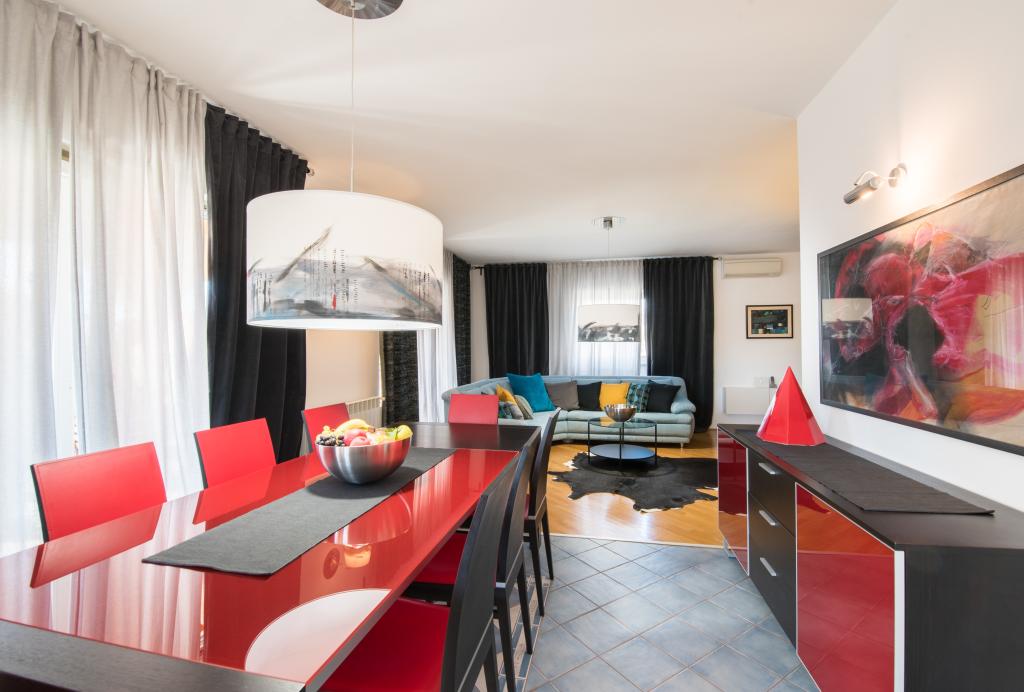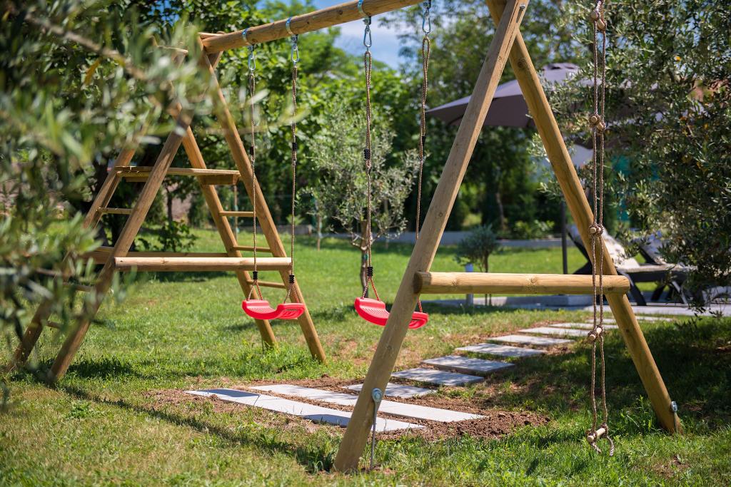 Our holiday rental home of 116 m2 is located in a residence of 1800 m2. It is a delightful, relaxing place in the quieter area which guarantees tranquility for a well deserved holiday. Only 3.3 km from the Old Town of Labin and 4 km to the nearest beach, the property offers a ground floor apartment which has recently been creatively designed into a stylish home, providing every convenience of home. Perfect for families with children to enjoy the benefits of a large swimming pool, sun terrace, the shades of olive and fig trees and lots of space to play around a fully fenced garden. The house can accommodate up to 6 persons in 3 rooms. It offers a safe roofed parking for 3 vehicles within the property and a large seasonal swimming pool. The 28 m2 roofed terrace to be reached through sliding doors in the dining room opens your door to the world of grilling, with a 2 burner gas grill and convenient side tables for serving trays. The perfect size to grill up a couple of burgers, chicken, steaks or fish. In case you prefer a garden fireplace, there’s one down the terrace stairs. All the food to be enjoyed with family members around a 6 seat table on the shaded terrace. The peaceful mornings are perfect for joggers and reading lovers. The host lives in a house only 100 m away and is