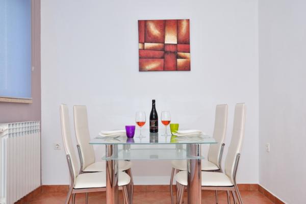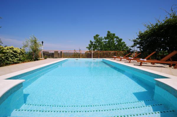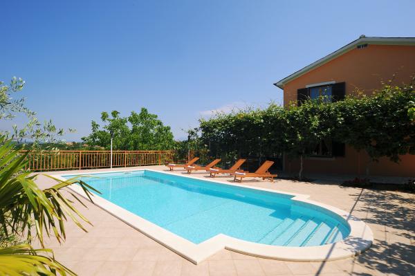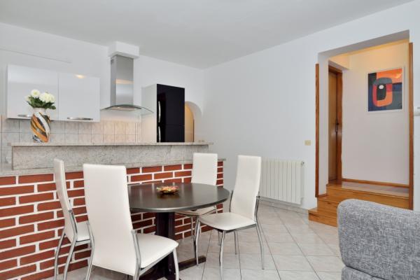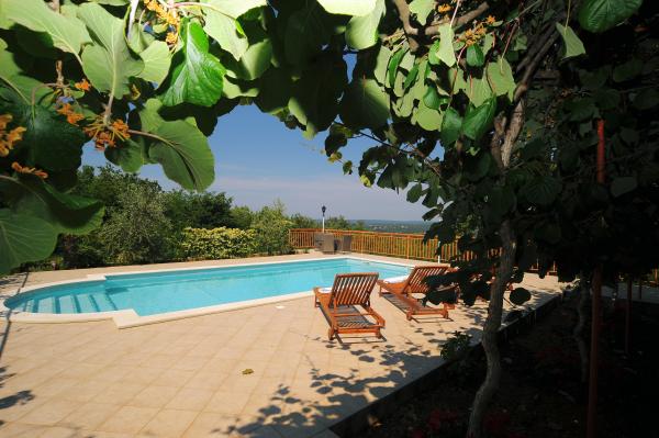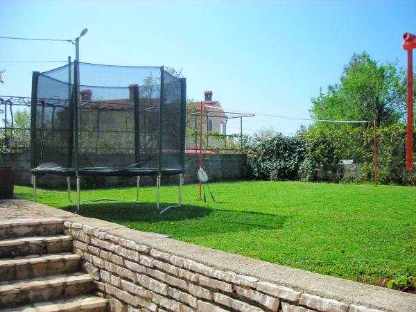 This contemporary villa with a 32m2 swimming pool is located in the shadow of the old town of Labin, a town of artists and museums where you can visit the mines. It is located 3 km from the sea. Located in a quiet location surrounded by greenery. It is suitable for 3 families or a larger group of friends. The Objetat has 5 double bedrooms, 2 single bedrooms, 3 bathrooms with shower cabins, 3 kitchens with a dishwasher and 3 living quarters. In the yard there is a swing and canoe, a badminton or volleyball court and a trampoline and 4 bicycles. Fireplace with large wooden table and benches. The house is completely fenced and is air-conditioned and has wifi internet. Fireplace and billiard room and darts. In the wild there is also a recreation room and table football. Next to the pool there is an open terrace of 60m2 with loungers and umbrellas