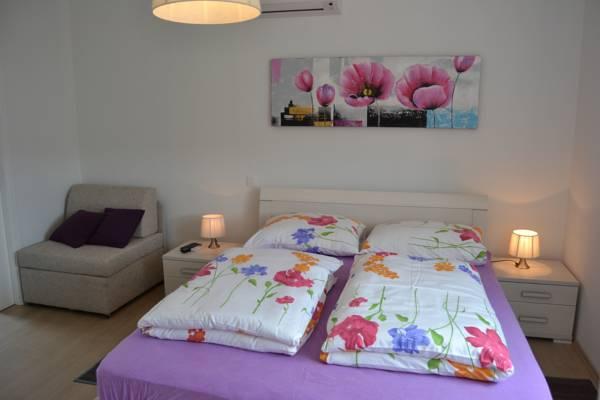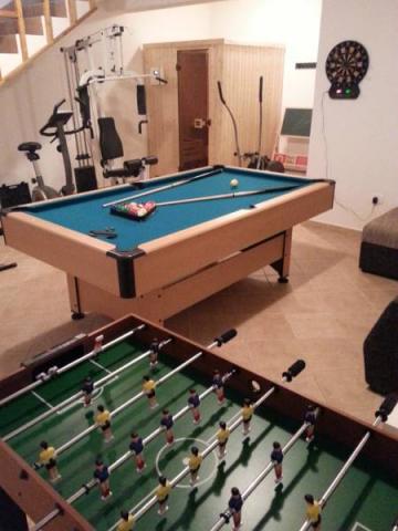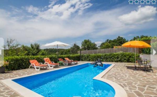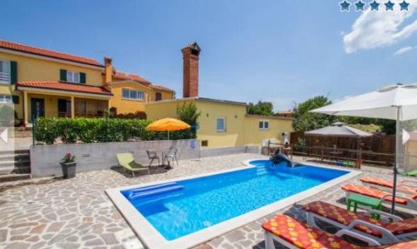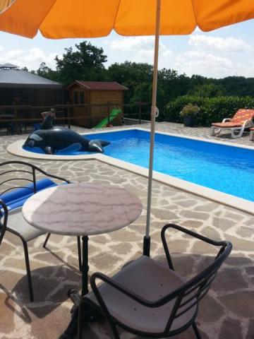 Beautiful and modern villa with a swimming pool located in a quiet village near Labin Snašići. The resort is surrounded by the natural environment and a healthy environment. The villa is designed to accommodate 4 to 6 people maximum. Living room with the TV, a sofa bed and satellite TV, modern kitchen with all appliances, dining room, two bedrooms with private bathrooms and television with satellite programs, fitness gym with sauna and billiards and table football with special bathroom, all provide you a memorable and enjoyable holiday in this beautiful part of Istria. Also within the villa there is an outdoor pool with a beach, deck chairs, umbrellas, outdoor terrace and terrace and barbecue near the pool. In the vicinity there is a shop. There are also bikes to enjoy riding in nature.