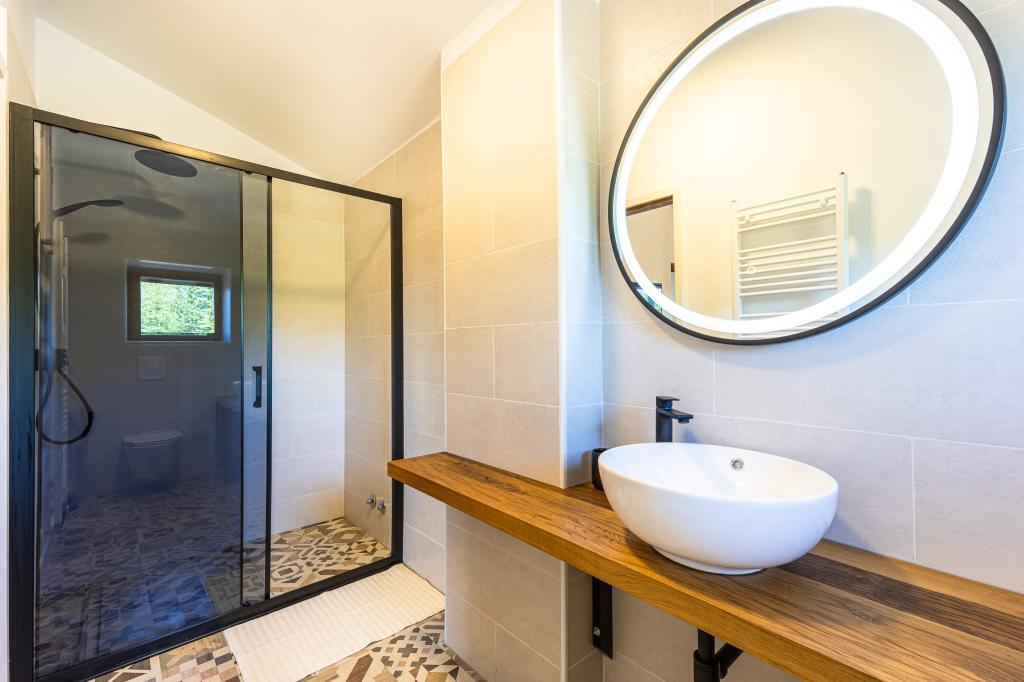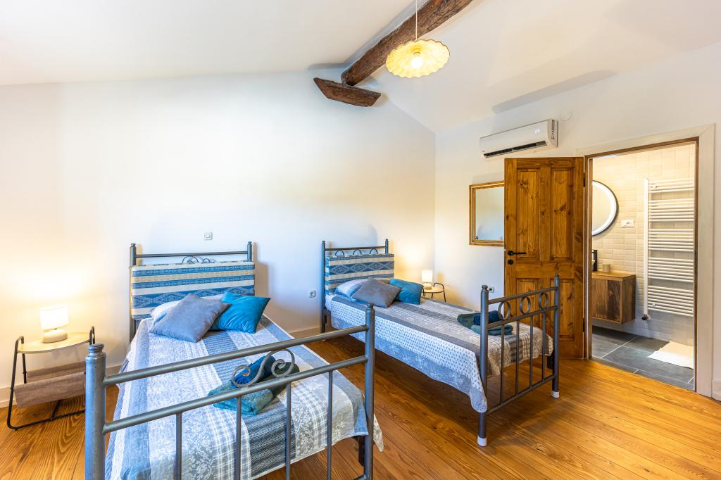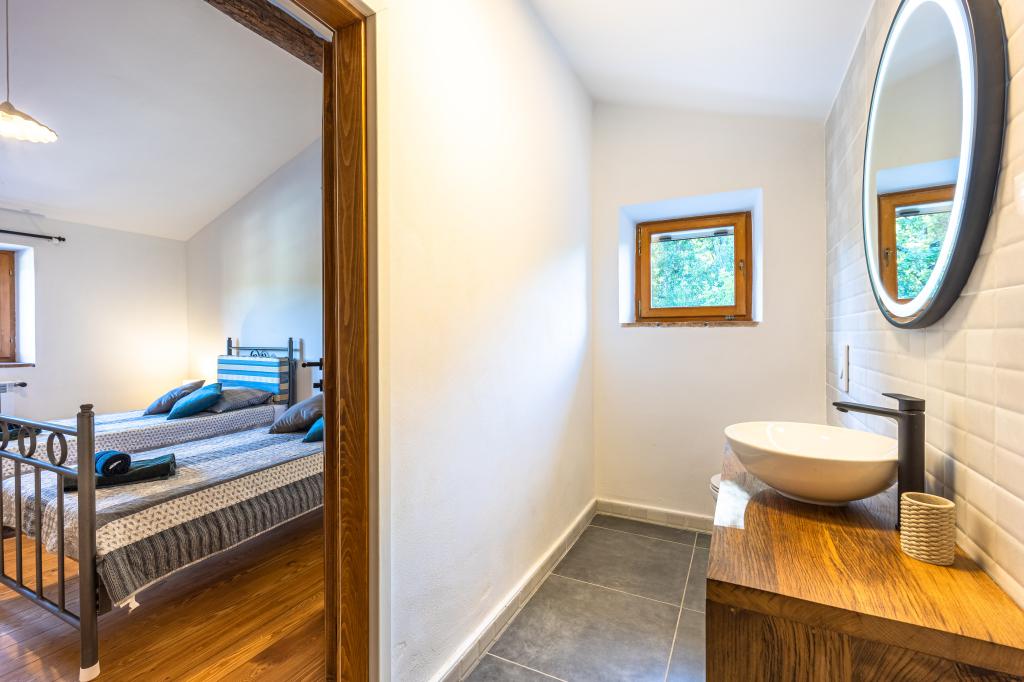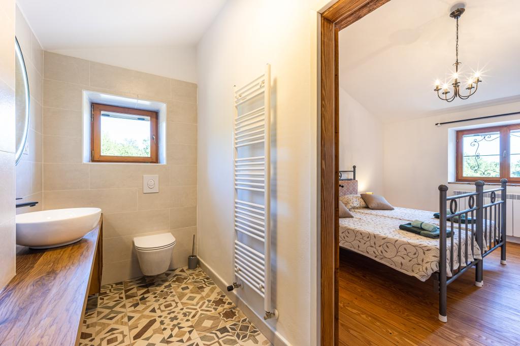Each bedroom in the villa has its own fully equipped bathroom, so all guests have their own private space and comfort. The couch in the living room is foldable and can be turned into a double bed. The kitchen is also fully equipped with a fridge, microwave oven, stove, electric tea kettle, toaster and full cutlery. Hang out with friends on the front porch surrounded by trees and in front of the pool or in the living room. We have wireless internet if you need a break from adventuring around the Istrian countryside and a TV in every bedroom. Each room is equipped with air conditioning. One of the key advantages of the villa is that it is located in a small and quiet Istrian village far from the busy west coast of Istria, yet it is only 15 minutes by car from the sea and many unexplored beaches south of the resort of Rabac.