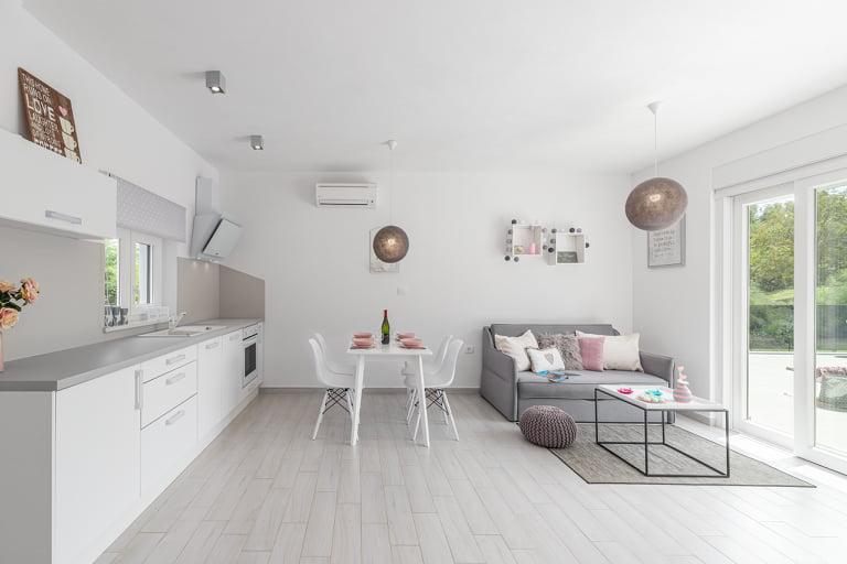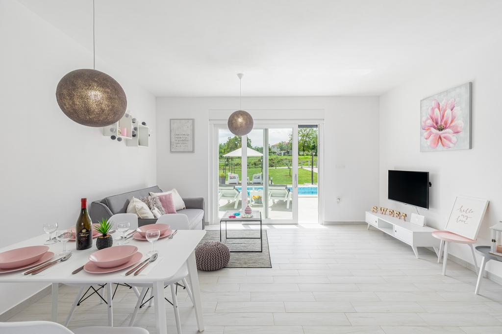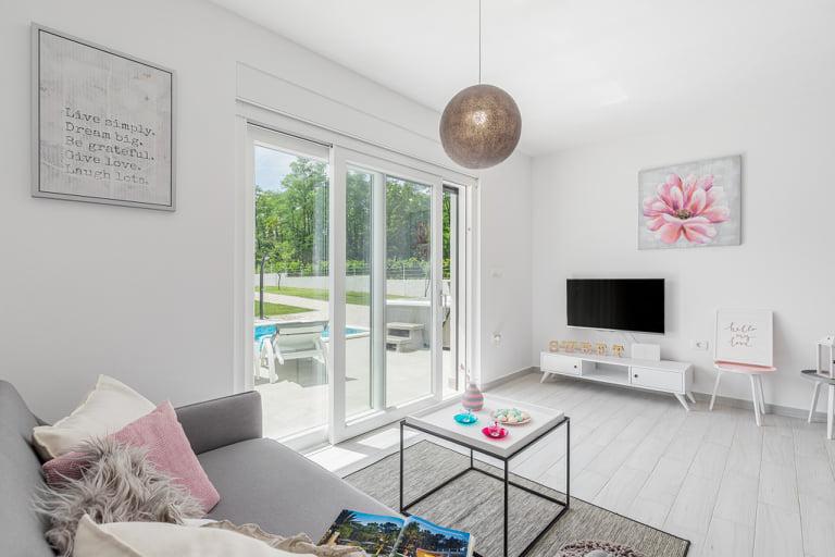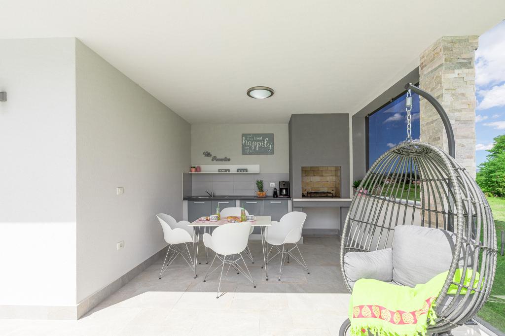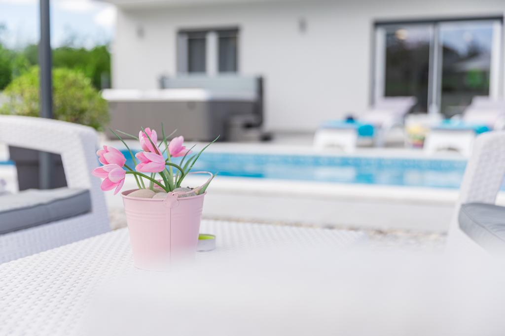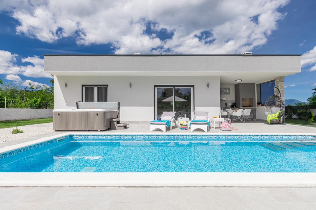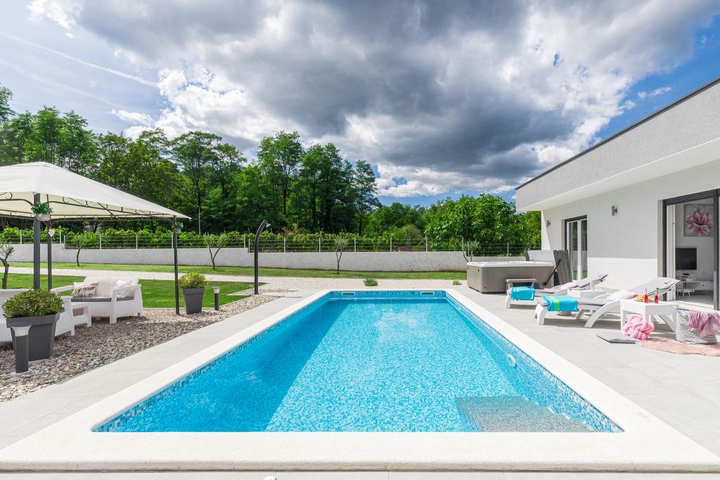 Villa Romantica is a newly built and modern house located in the small village of Zupanici, near Labin. It is surrounded by vineyards and greenery. It offers complete peace and quiet, far from the hustle and bustle. The nearest shops and restaurants are 2 km away, while other facilities are only 7km away in nearby Labin. Villa Romantica covers an area of 50m2 and consists of a living room with a sofa bed for two (140x200), satellite TV, free internet, a table and chairs for 4 people and a fully equipped kitchen, a dishwasher, a microwave, a coffee machine, washing machine, towels. . It has one bedroom with double bed, satellite TV, door to the outdoor pool and bathroom (shower / WC). Outside is a garden of 800m2, and an outdoor swimming pool of 32m2 with hydromassage. New for our guests We now offer an outdoor jacuzzi (210cm x 210cm). The Jacuzzi has 3 seats and 2 reclining seats. Villa Romantica is open year-round.