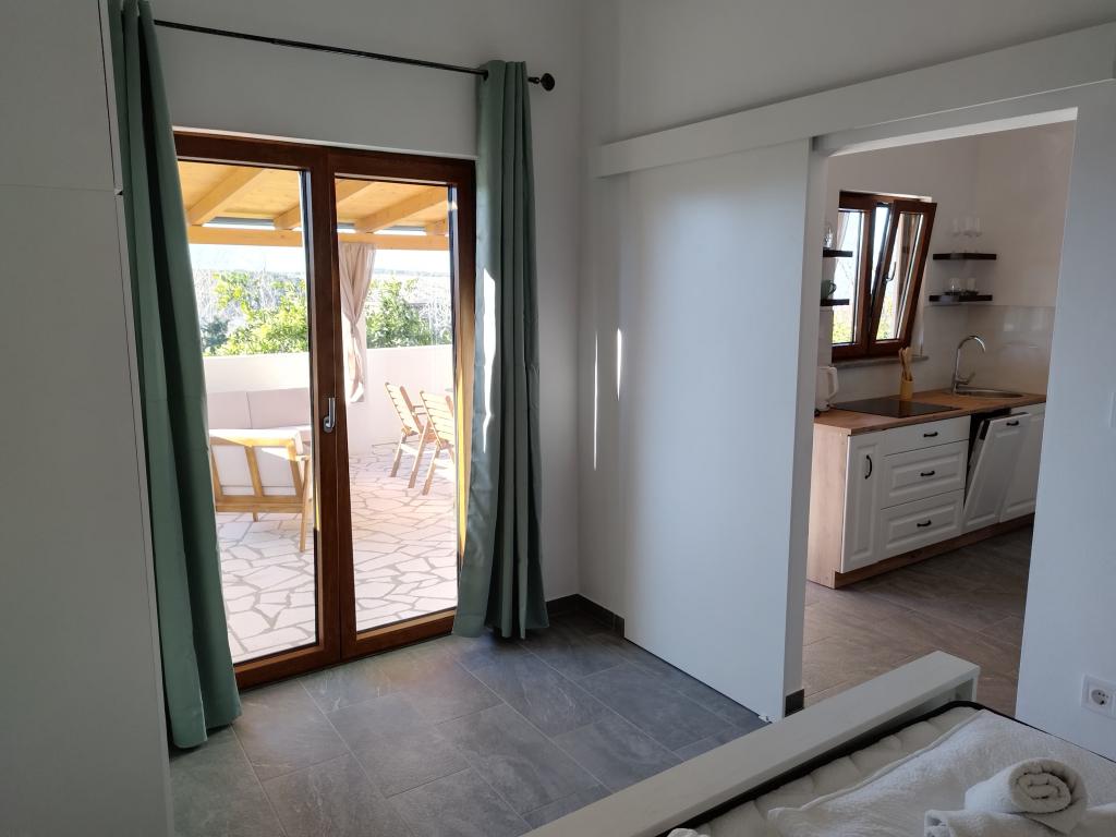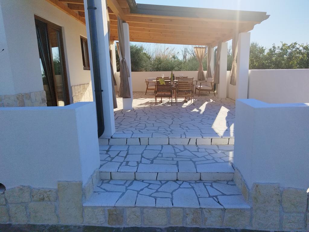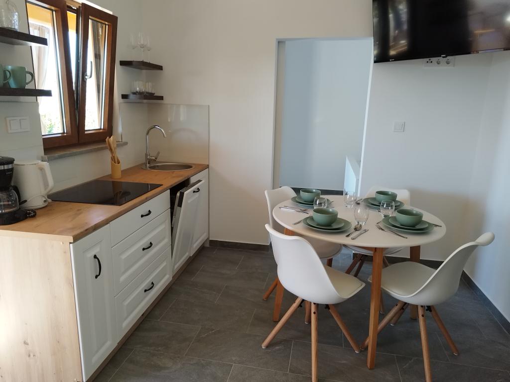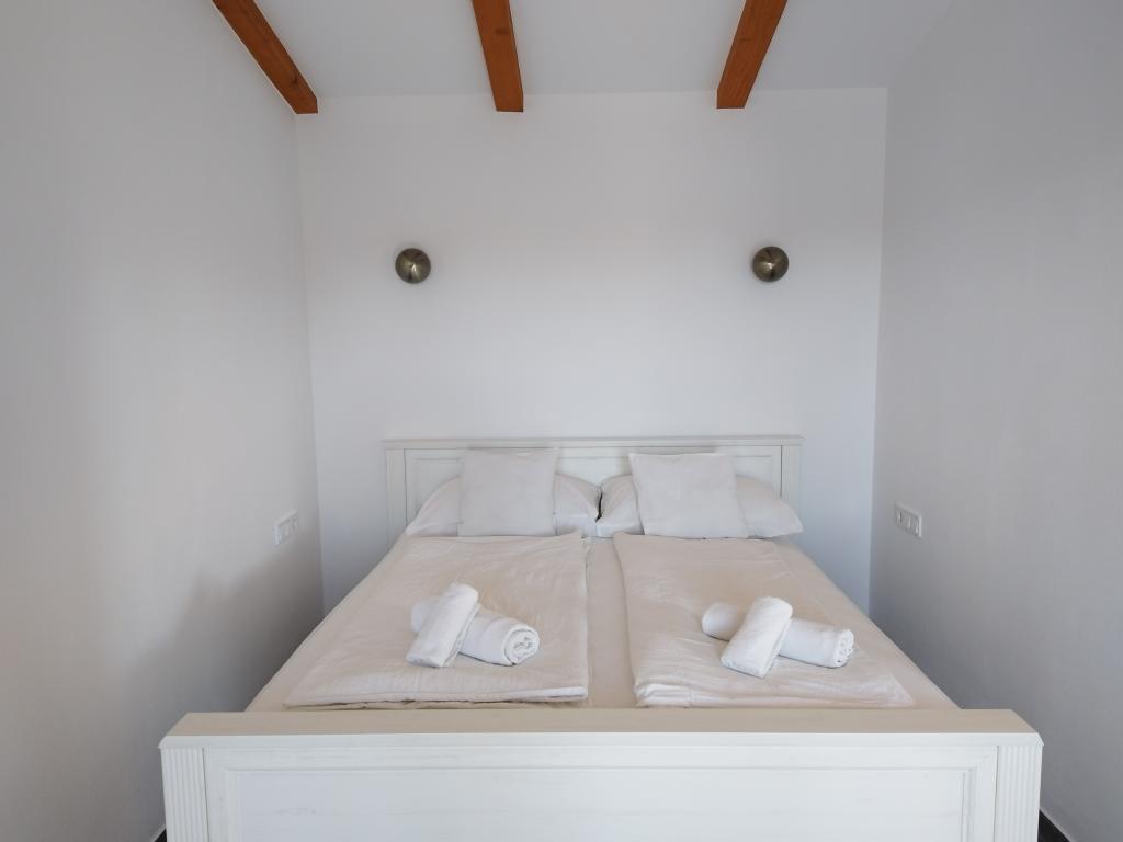 This charming, newly renovated house covers 40 m² of interior space with two comfortable bedrooms, an elegant bathroom and a modernly equipped kitchen that includes a dishwasher, microwave, refrigerator and all necessary utensils. The dining room and living room with TV offer a pleasant space for socializing. Each room is air-conditioned for your maximum comfort. In front of the house there is a spacious covered stone terrace (90 m²) with a dining table, seating and barbecue - an ideal place for morning coffee, a long breakfast, a book in hand or evening socializing with the sunset.