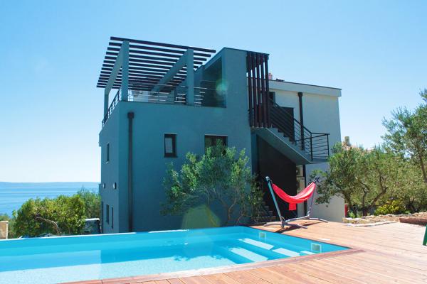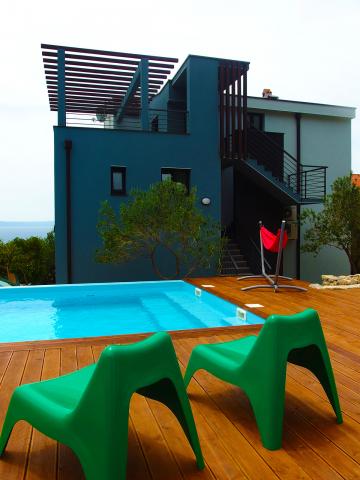 Villa in an olive grove above Makarska with a large swimming pool (8 x 4 meters). This is not a typical house for rent but holiday home of a large family whose every part individually decorated according to the wishes and needs of that part of the family that the space used. The house is divided into three separate units - two-floor apartment, studio and loft apartment with a large terrace with a wonderful view of the sea and islands in the south, and the mountain slope to the north. Each unit is fully furnished differently, and the whole house is equipped with 5 bathrooms, 3 kitchens, 6 bedrooms, two living rooms. It is surrounded by olive trees where there is a summer terrace with grill area. In short, the right place for rest and entertainment.