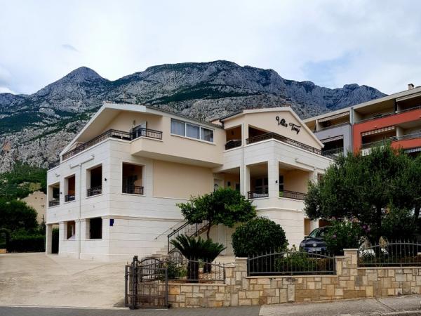 Completely and modernly equipped villa with pool near the center of Makarska, 7-8 minutes from the city center. The facility has a two-bedroom apartment for 4+ 3 people, 1 two-bedroom apartment for 4 people, an apartment for 2 +1 people and 3 bedrooms with shared kitchen. Each bedroom has a private bathroom, TV, refrigerator and balcony. Guests have at their disposal a swimming pool measuring 4x6 meters, a gazebo with a summer kitchen, children's playgrounds, secured parking spaces and a spacious yard with a garden. In the immediate vicinity of the building (1 km) is the famous FKK beach Nugal, which can only be reached on foot. Near the house there are all large supermarkets (Lidl, Kaufland, Konzum) as well as a gas station and hospital. The villa is suitable for larger groups of people, as well as for couples and families with children.