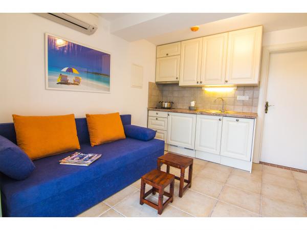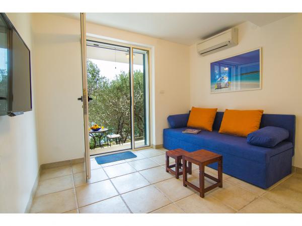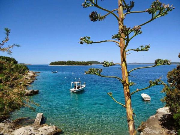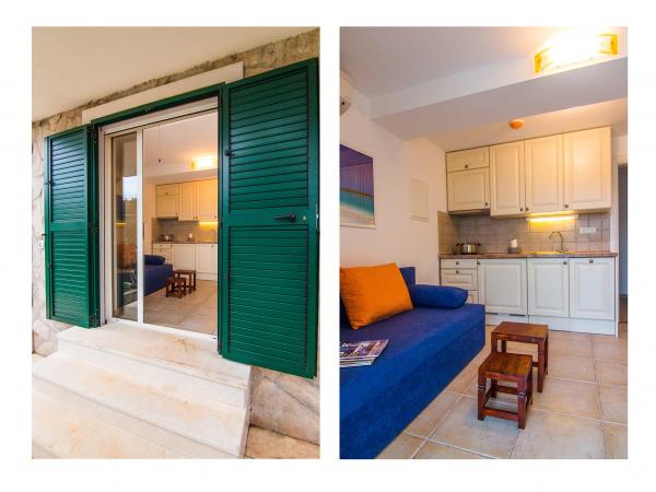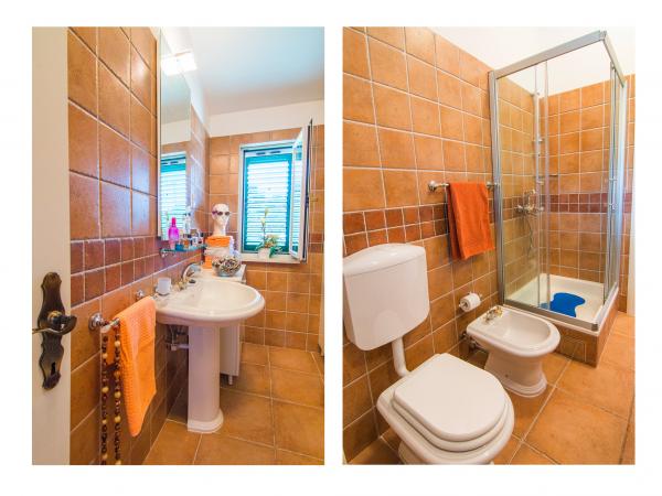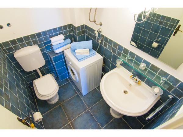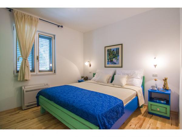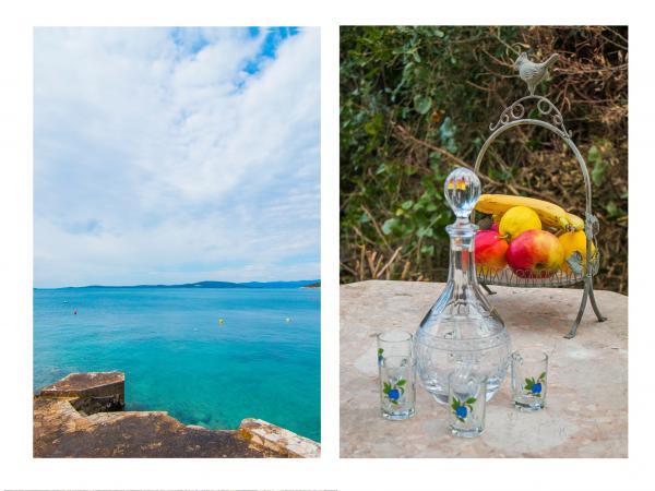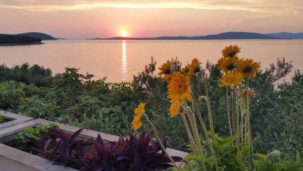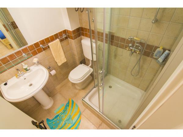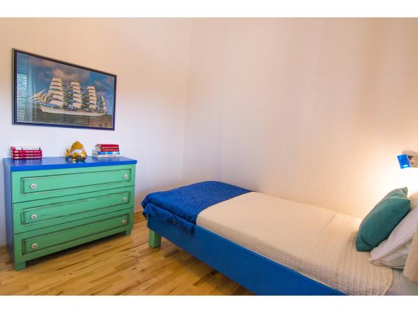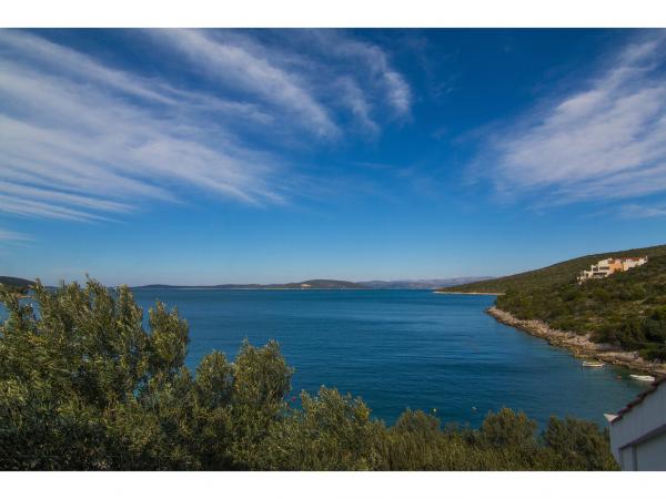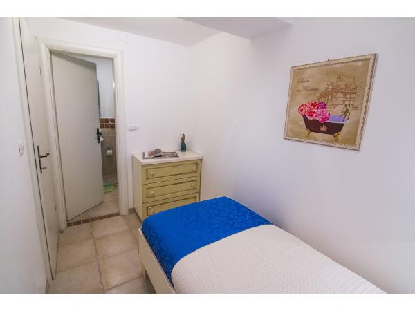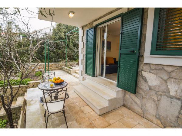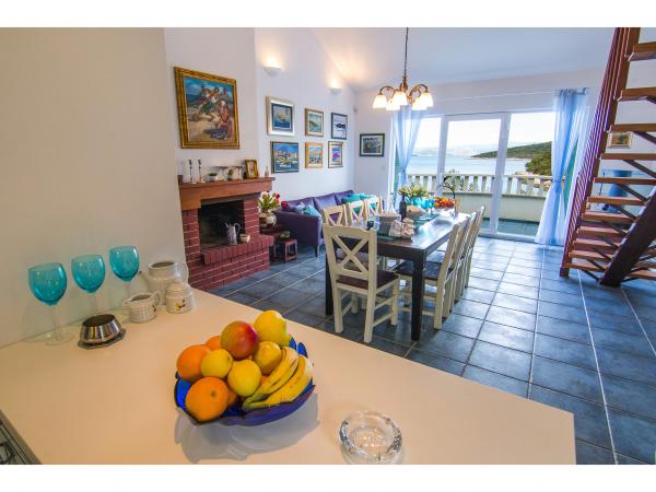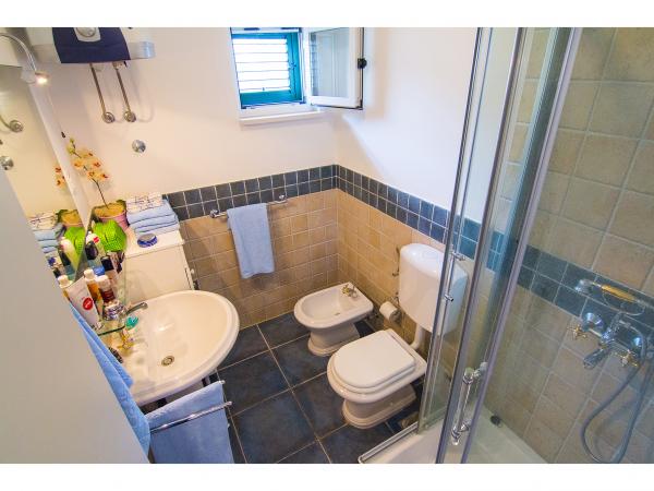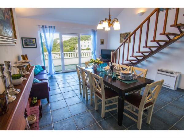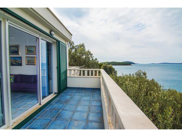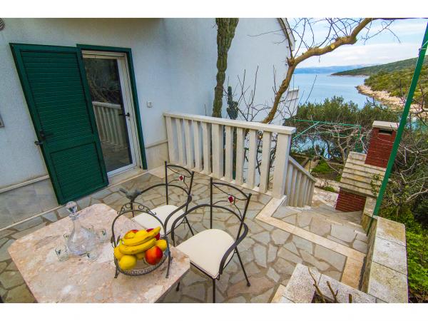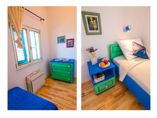 Villa Jadranka is located in the bay Tepli side, 500 meters from the center of the olive groves. Bay Tepli side is an ideal place for a holiday as it often blowing wind breeze, the reason was never hot. It is also a great place for windsurfing. Villa Jadranka is 15 meters from the sea. Below the house there is a beach, which is reached by stairs through the private garden, which is why there is no access to the beach no one but guests of Villa Jadranka. The garden of Villa consists of 400 m2 beautiful garden with indigenous Dalmatian plants. In the courtyard and barbecue, as well as an outdoor shower. The villa consists of three floors with a total capacity of 10 beds. The well-equipped, spacious and functional, the villa is ideal for a wonderful family vacation. The ground floor is designed as a self-contained functional units, functions as a small detached apartment. The first and second floors of the villa have a common entrance, with on the second floor reached by stairs which are located in the living room of the first floor. Every room in the house has air conditioning. The ground floor (25m2) has a separate entrance and consists of two single bedrooms, kitchen (with dishwasher) and a bathroom. The first floor (approx 75 m2) consists of one double and one single bedroom,