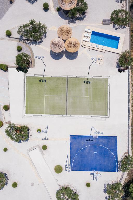 Residential tax is included in price.Swimming pool (32 m2), hot tub, sauna (Finnish sauna), 2 outdoor showers, padel court, basketball court, bocce court, mini golf, outdoor gym, table tennis, table football, darts, billiards, children's playground, 2 outdoor fireplaces, wine cellar, outdoor summer kitchen and outdoor bar. In addition to the facilities, we offer welcome drinks and gifts for our guests.