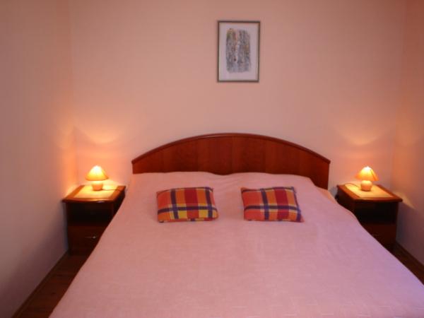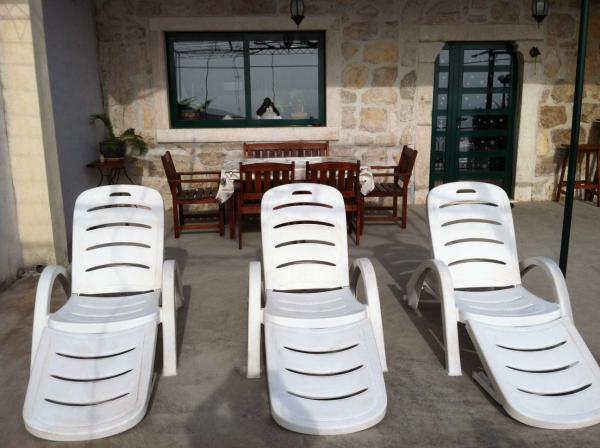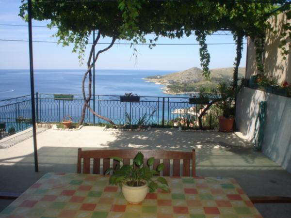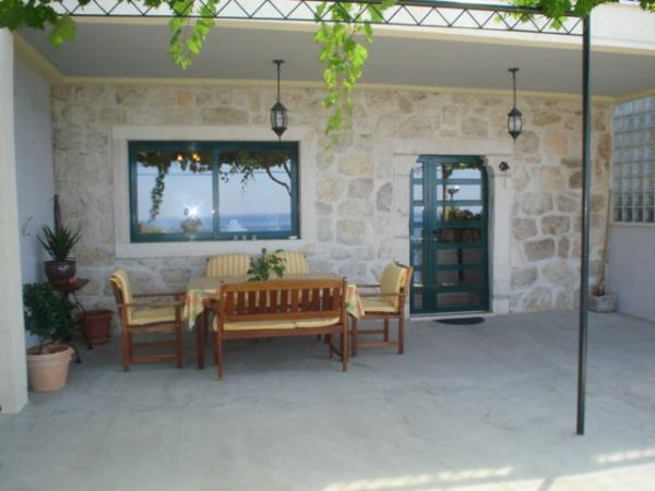 The house is situated on a hill above the mill with a beautiful view of the sea, islands and center. Vacation home in a quiet environment and comfortable accommodation for 6 to 8 persons. It was built in the southern style of rock than 500 g, and renovated in 2005 g. There are 3 bedrooms with double beds, two with balconies overlooking the sea, and the third with a view to the garden. The living room contains a bed for 2 osobe.Također in the living room has a large LCD-TV, satellite TV, wireless internet, DVD. Two bathrooms in the house, one with shower, one with bathtub and washing machine. The kitchen is new with all necessary appliances and utensils. From the kitchen and living room is a large terrace with garden furniture and sjedaćom view. Behind the house is a terrace with barbecue. The house is fully air conditioned. Parking is in front of the house.