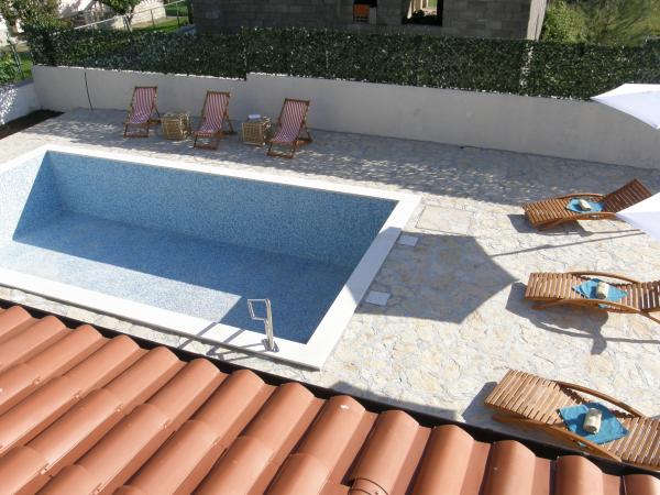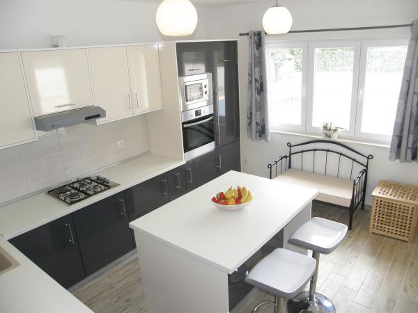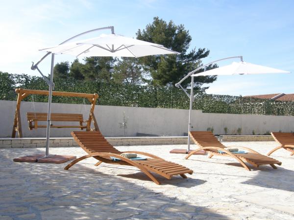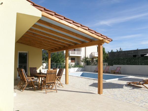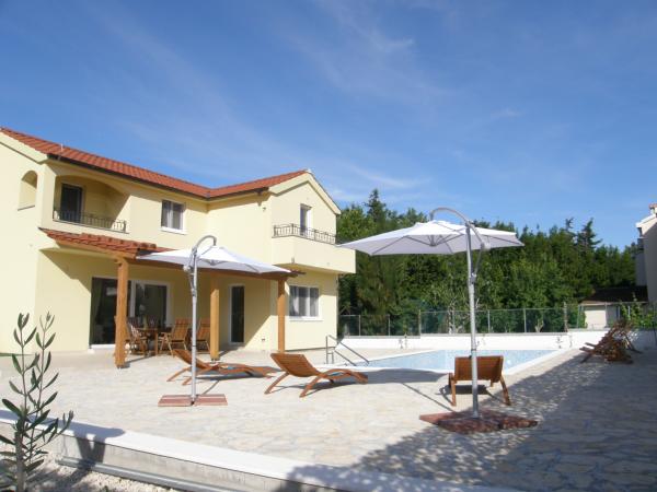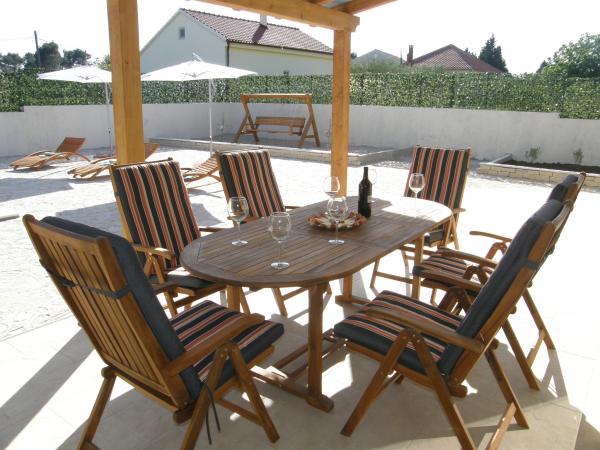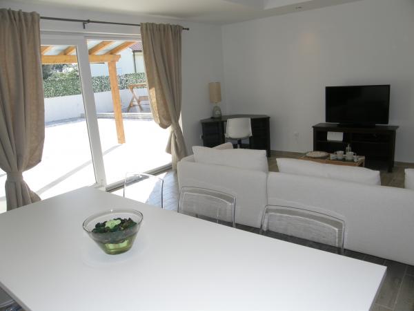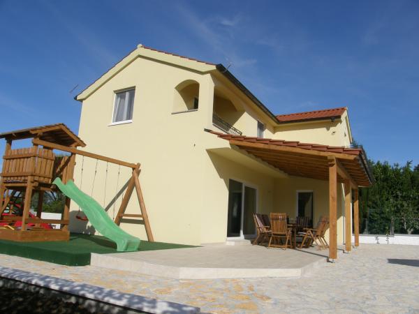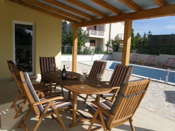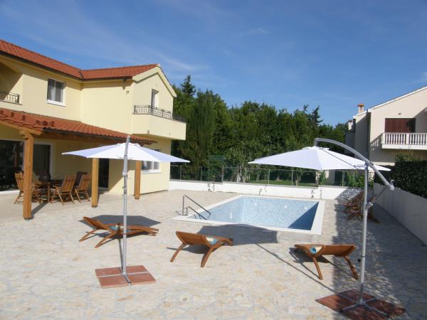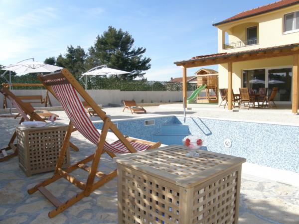 Brand new villa with swimming pool near Zadar. The villa is 3 km far from Nin and 3 km far from the holiday resort Zaton. Distance to Zadar is 15km. The villa has 3 bedrooms, 3 bathrooms, fully equipped kitchen; fridge, freezer, microwave, stove, oven..., living room, 20m2 of outdoor roofed-over terrace and an outdoor swimming pool 32m2 big. 530m2 big yard has garden swings, deck chairs, sunshades and children\s playground. The garden is planted with olives, lemons, lavender and rosemary. Villa is located in Ninski stanovi in a peaceful sourrounding of family houses. The most romantic town Nin is only around 3 km far. Nin is known for its rich history, healing mud, salt museum and a long sandy beach. Welcome!