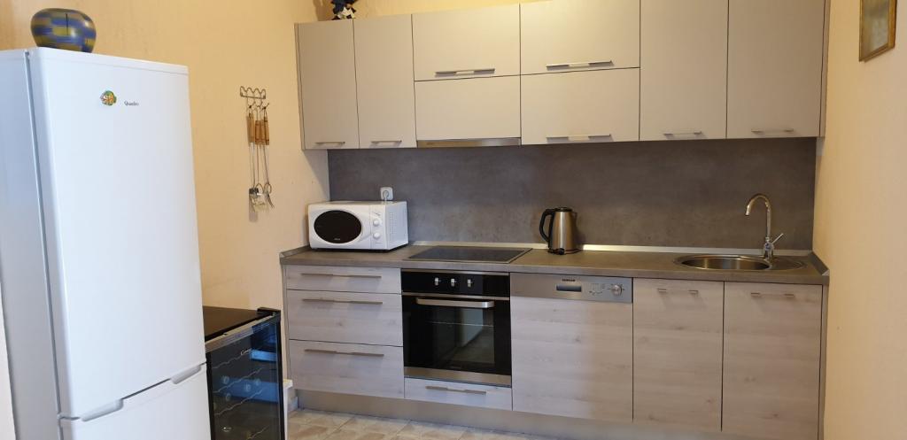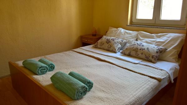 Rent a holiday home in Novi Vinodolski. The same consists of 4 bedrooms (8 people), two bathrooms with showers, a large living room, dining room and kitchen, two terraces of the house overlooking the sea. Beside the house is a garden with a terrace and barbecue. There is parking for 3 cars. The house is from the city center only 300 m and 400 m. The house is fully furnished and with the basic things (cutlery, crockery, oven, hob, linens, towels) and contains a washing machine, microwave, kettle, toaster, meat cutters / bread, washing machine. Rental is per day and the price depends on the period for which it is seeking. For further inquiries we are available.