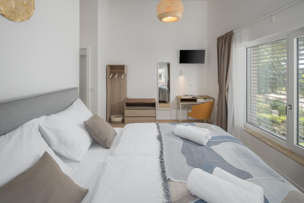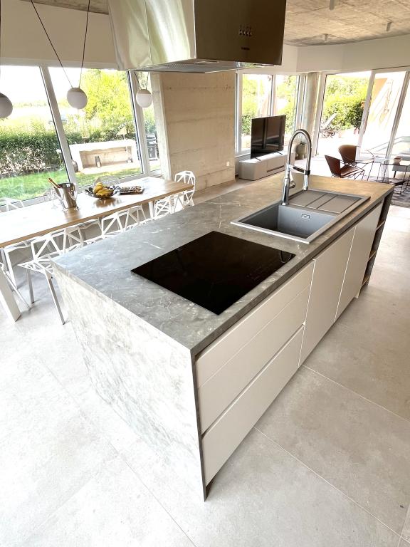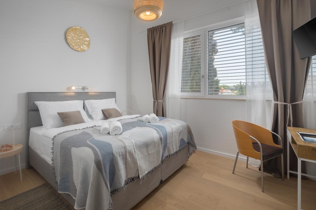 Your new unique place for your vacation in our brand new Design Luxury Villa Valdora. The house is located in the charming Istrian town of Novigrad, 200 meters from the beach and 15 minutes' walk from the center. With an excellent location, sea view, old pine trees in the yard and a huge terrace with a private heated pool, guests can be welcomed by 3 comfortable bedrooms with king size beds, each with its own bathroom and air conditioning. The house offers a large living room with natural light and a fully equipped kitchen with a large table for 8 people. Sunbeds are by the pool where you can sunbathe on the terrace and enjoy your luxurious and relaxing vacation. Pets allowed on request Minimum stay 7 nights