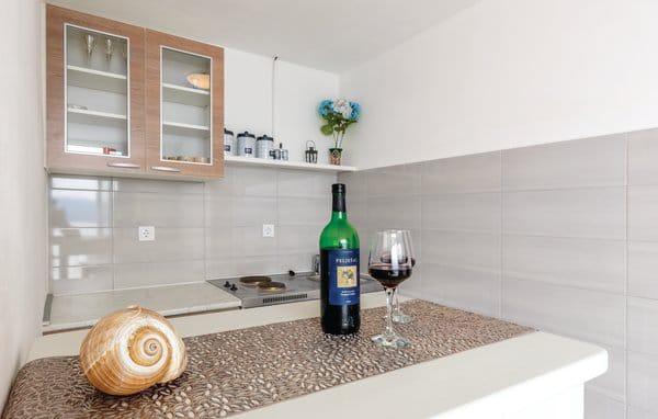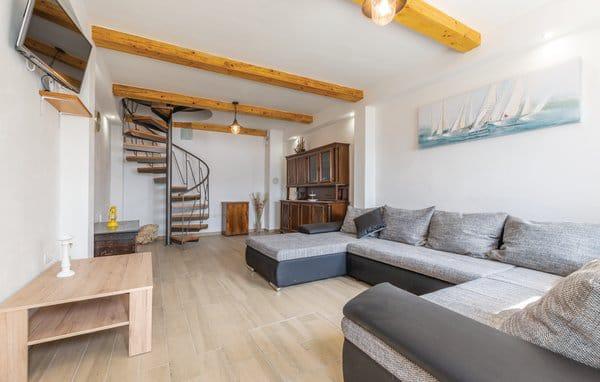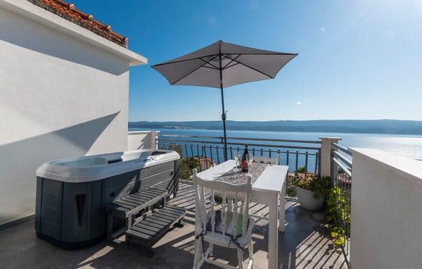 The semi-detached holiday home is located on a hill in the small town of Stanići near Omiš, and has three floors connected by internal and external stairs. Next to the room on the second floor is a kitchenette. The terrace offers a breathtaking panoramic view of the sea and islands, and beautiful pebble beaches are only about 450m away. In Omiš, 5 km away, you will find facilities and entertainment for all generations. A special feature of this area is the Cetina River with the possibility of rafting and other river activities.