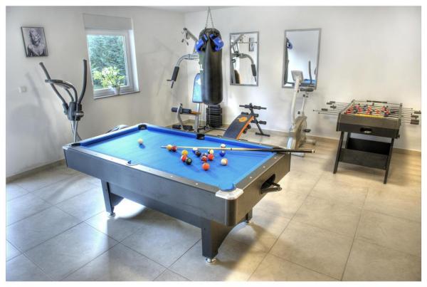 Facilities: Villa Lorena (362 m2) is newly built and furnished. Living Room Villa (196 m2 terrace and balcony areas 106m2) consists of basement, ground and first floors. In the basement there is a garage with table tennis (60 m2) from which a direct entrance to the Villa. In the second part of the basement there is a fitness room with table football and pool table, two bedrooms and a bathroom with washing machine. In the first room there is a bed size 200x200 cm, 140x200 cm in the second. Staircase leads into the entrance hall, which consists of a living room, surrounded by glass walls. The living room has a fireplace, lounge area, satellite television. In the living room there is a kitchen (with dishwasher, refrigerator, oven and stove) and dining table for 10 persons. Outdoor Jacuzzi WORK AND HEATED YEAR ROUND AT 30 C. Others on: www.croatiavillasopatija.com