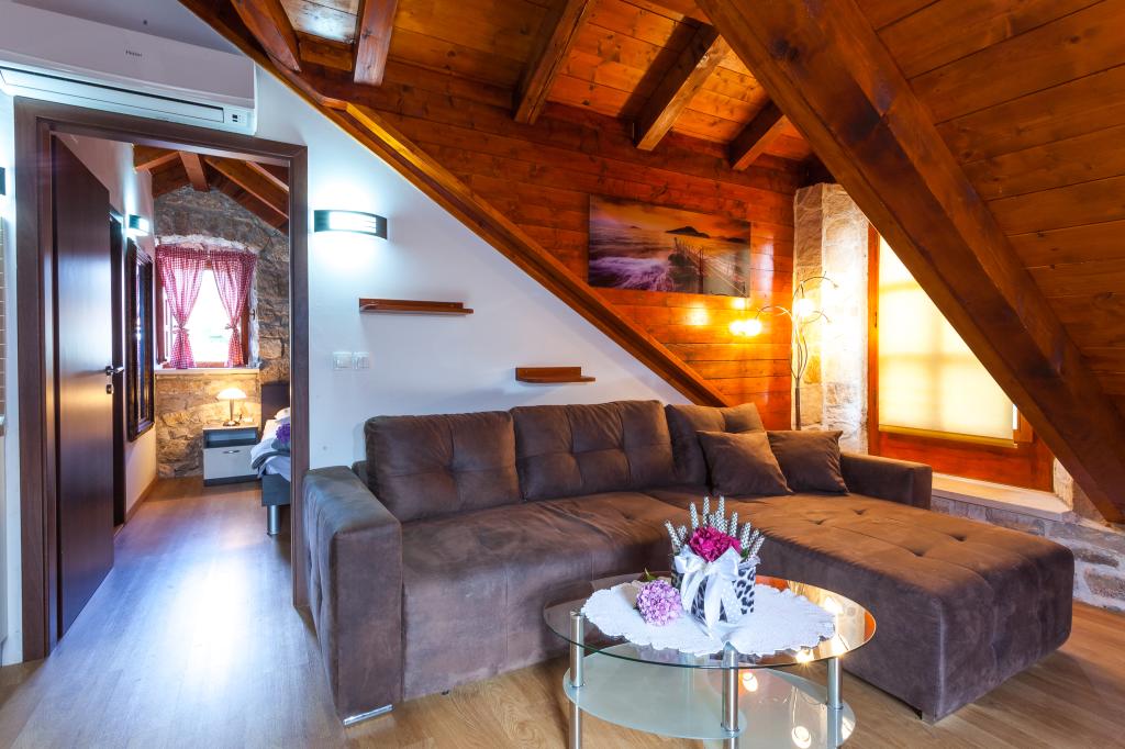 The silence and atmosphere of the Mediterranean as it once was, intimacy and simplicity combined with unpretentious luxury can be found in the ancient village of Stanković, built in the 15th century, above Orebić. Dark wood in combination with white stone, ancient pale green shades of shingle and luxurious interior do not leave guests indifferent. The entire property of 2000m2 is ideal for a quiet family vacation and connecting family and friends. It consists of: 3 houses - Azur, Wood, Ston. Villa Ston / attic - 6 people. (3 x bedrooms) Common area: outdoor pool, jacuzzi with a waterfall, playstation room, gym, children's park and plenty of shade for an afternoon siesta. Televisions, air conditioners, dishwashers and other appliances make you feel at home. The village of Stanković is an ideal base for exploring the island or you can relax on a nature walk with a view of the sea that smells of Mediterranean vegetation. You are only 15 minutes away from the city, the beach, while you enjoy our hidden treasure.