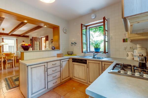 Residential tax is included in price.The 340-square meter garden is surrounded by a high stone wall, offering a true sense of privacy to the residents. Tiled terraces round the house, with deck chairs, a barbecue and a large dining table beneath a wine pergola on one side, and for the recreation loving guests, table tennis on the other. If you feel like sunbathing and catching a tan quickly, the first-floor living room exits into a flower clad terrace, ideally positioned to catch the rays. If it is a shade and coolness you crave, a retractable sunscreen turns the terrace into a shaded oasis, perfect for reading sessions, or cocktail sipping until sundown.