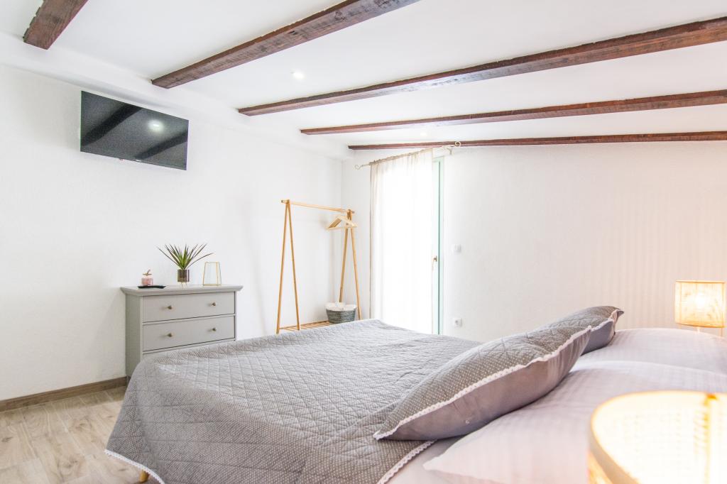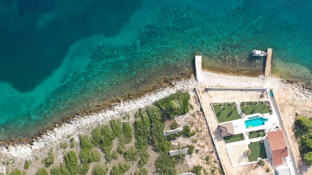 The rustic Villa Gagliana is located on the island of Žižanj, southwest of the island of Pašman. It does not have a direct connection with the mainland, but the hosts are certainly available for transportation and delivery of groceries. The villa offers complete peace and relaxation by the sea coast itself and a 40 m2 swimming pool filled with fresh water. The interior of the villa is air-conditioned and equipped with 2 bedrooms, one of which is a double bedroom and the other a children's room with two bunk beds and one single bed, fully equipped kitchen with living room and toilet. Within the villa there is another guest room with a fan and a private entrance and a double bathroom (2X sinks, 2X toilets, 2X bathroom showers). In the fully fenced yard, there is a covered chimney with a grill and a simple place to sit. Relax and enjoy the jacuzzi and outdoor sauna. As for sports, the villa has a kayak and a paddle board, which allows guests to enjoy and tour the island and the coast.