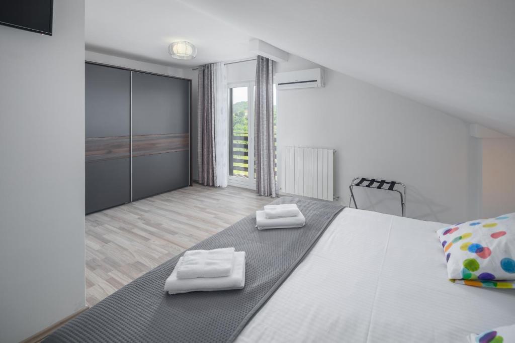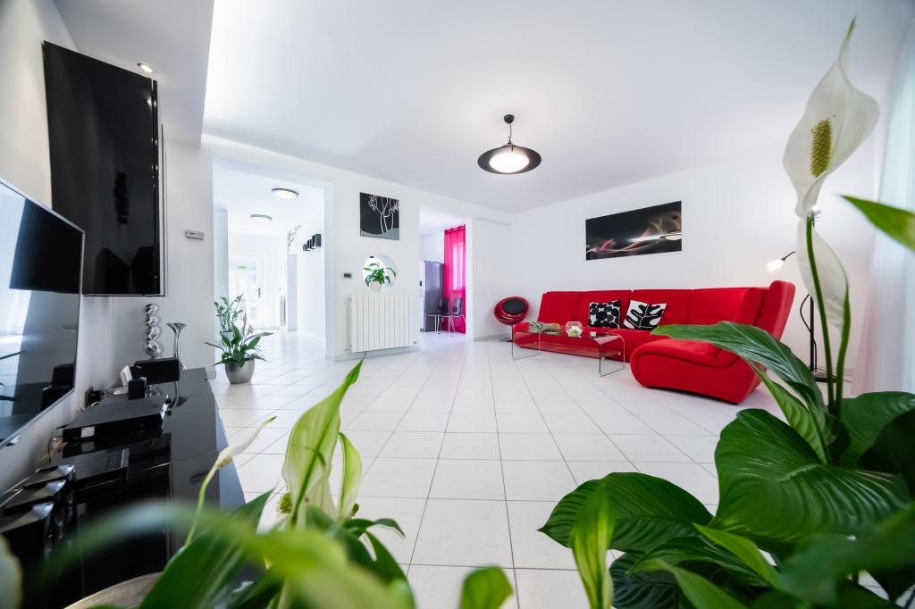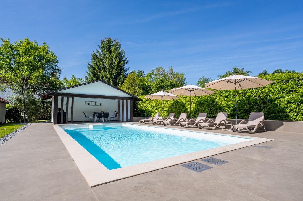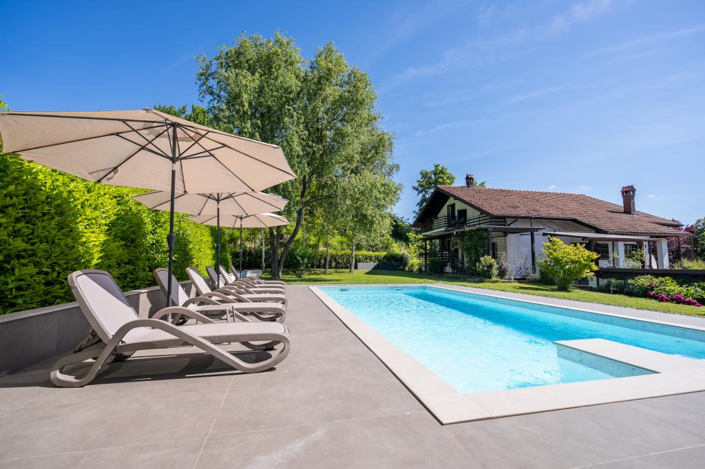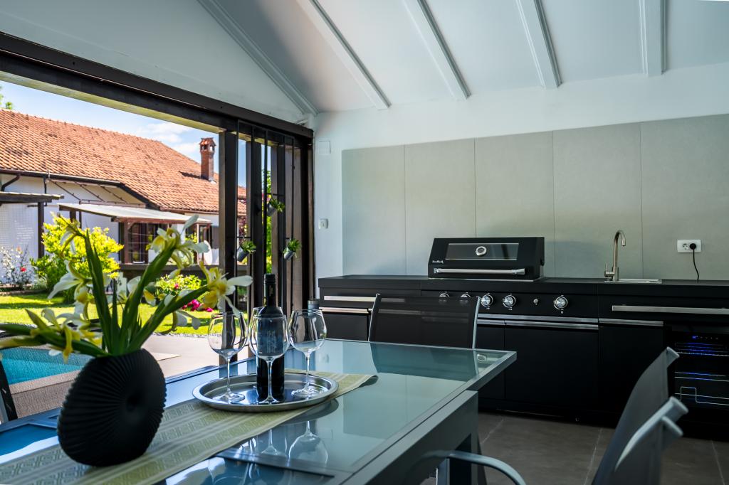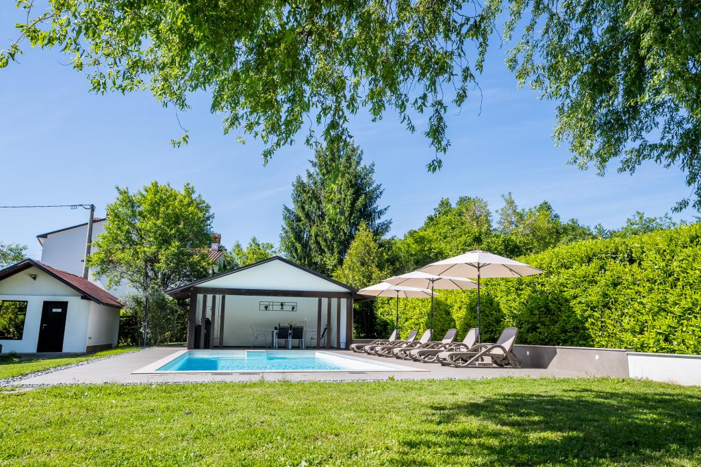 Fully equipped villa in the interior of Istria, offering a peaceful and pleasant vacation. Distance from beautiful beaches approx. 30 km. It has a heated swimming pool 10 × 5 m, a large garden with an outdoor barbecue, play facilities and 3 parking spaces. The interior is modernly equipped with all necessary facilities. Possibility of an active vacation on the well-maintained bicycle paths in the area, enjoying the charms of the sea or visiting numerous restaurants and rural tourism with traditional dishes.