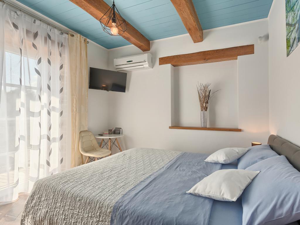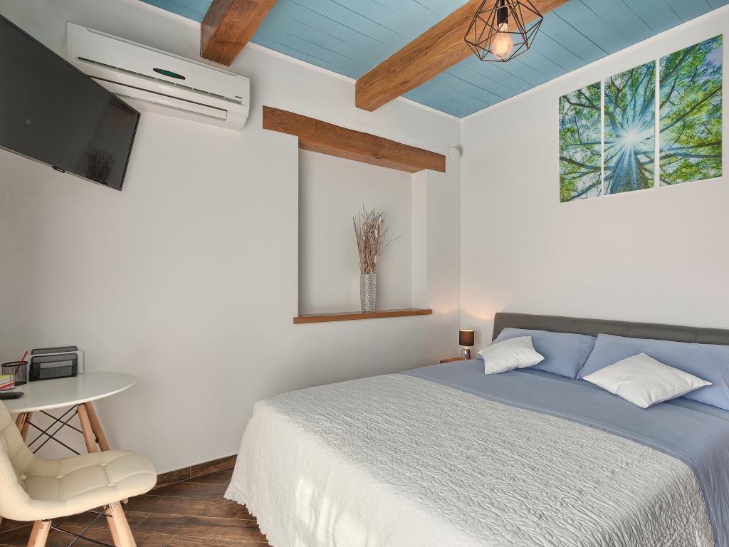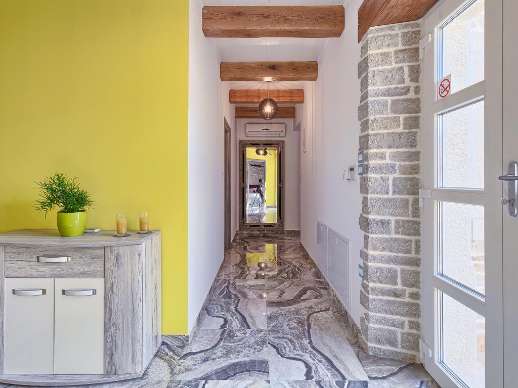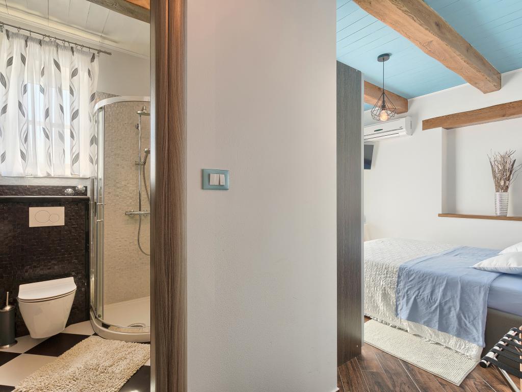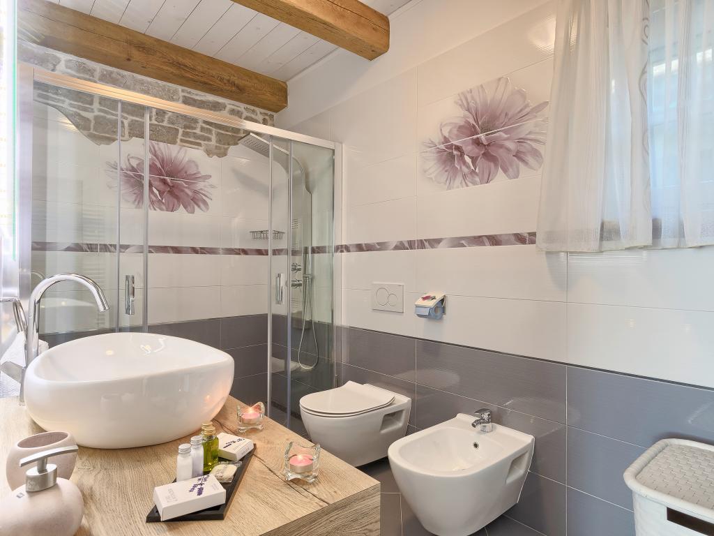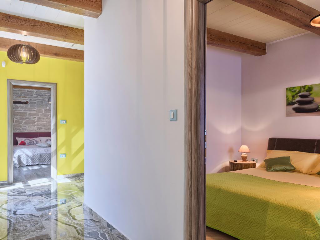 Whether you are looking for an escape from the hustle and bustle of everyday life or a base for your active vacation, Villa Patrick is the ideal place for you. An old stone house from 1880, completely renovated in 2017, is located in the small town of Pilati near Pazin in the heart of Istria. The house of 200 m2 contains everything necessary for a comfortable stay for up to 10 people (8+2), and the fenced garden of 500 m2 with a swimming pool provides peace and maximum privacy. The ideal position in the center of Istria allows you to plan additional activities, from cultural and artistic, sports, historical to gastronomic tourism, because all known locations are 2-40 km away. And if you want to expand your horizons, the place is ideal for planning one-day trips to somewhat more distant places like Pula, Rovinj or Umag. Villa Patrick can accommodate up to 10 people (optimal 8), and offers you maximum comfort. There are four comfortable bedrooms with double beds and private bathrooms - each room has its own air conditioner and television with satellite receiver; shared living room with fireplace and satellite TV, shared bathroom, large kitchen with all modern appliances and open dining room for 10 people. The outdoor space includes a terrace with a swimming pool, two seating areas,