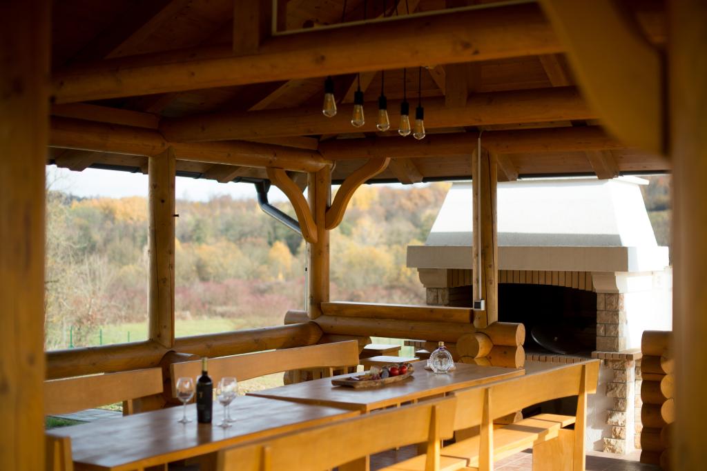 Wooden house made of Siberian pine. House: maximum no. beds 10, house 108 m2, terrace with pool 105 m2, sauna, jacuzzi, gazebo 30 m2. garden over 7,000 m2, parking, living room with kitchen, 3 bedrooms, bathroom with shower and toilet. Closed terrace with fireplace, tennis court for socializing and sports, changing room with shower and toilet, gazebo with barbecue, fishing rod and necessary equipment. Children's playground, 4 TVs, darts.