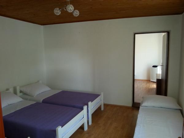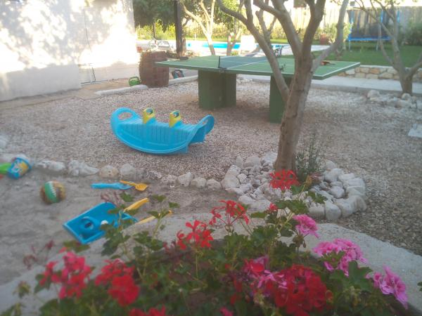 House with pool Jukic is located in the small coastal town of Posedarje, which is located on the coast of Novigrad Sea, 25 km from the town of Zadar. It is located near the famous national parks of Paklenica, Velebit, the river Krka, Kornati and Plitvice Lakes. The house has two large bedrooms and two smaller, two bathrooms with showers, a kitchen equipped with all appliances, Wi-Fi, satellite TV ... In front of the house is a large fenced yard suitable for small children with a trampoline, table tennis, Pool measuring 7 4 meters ....