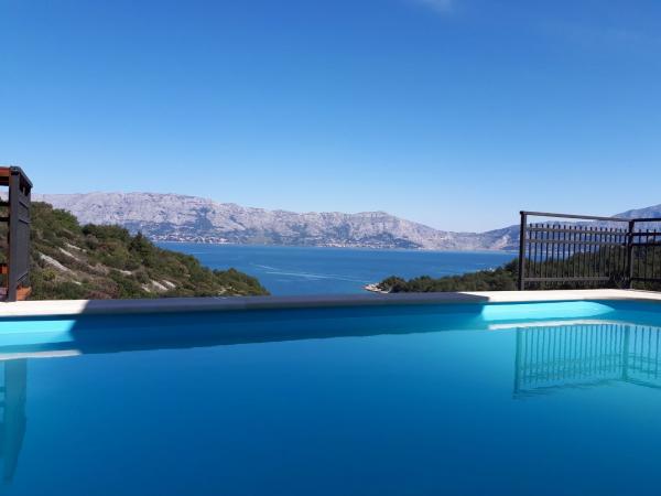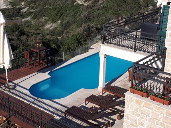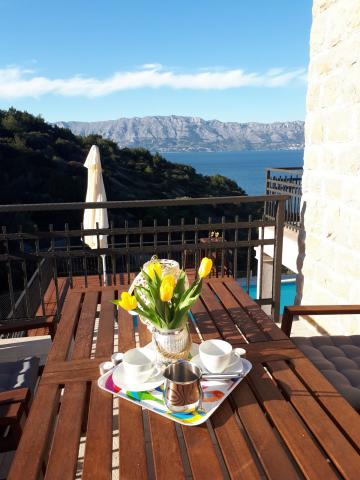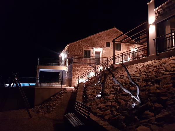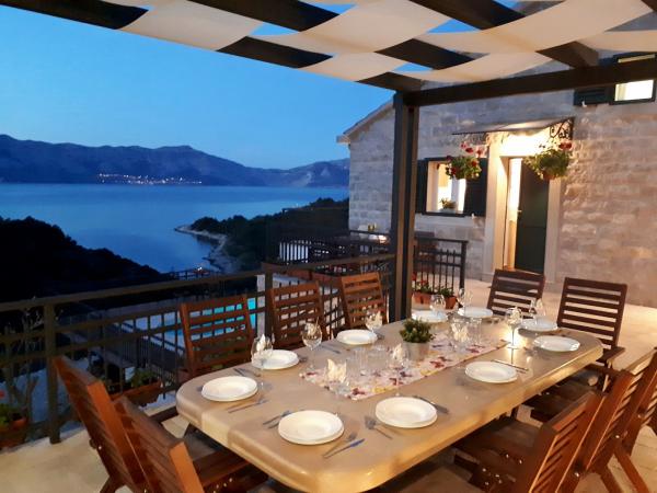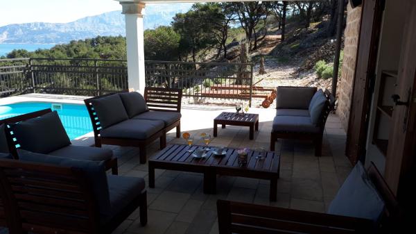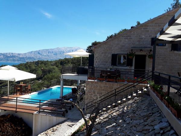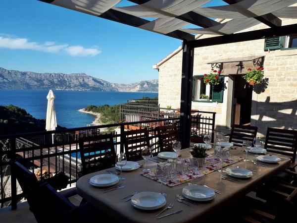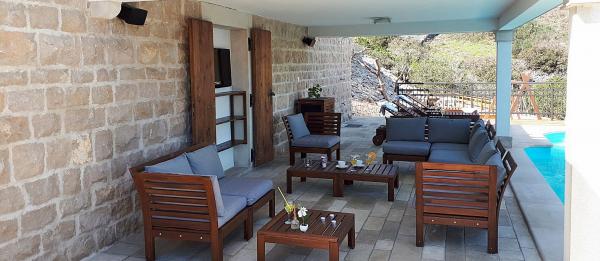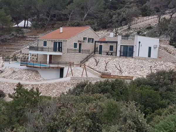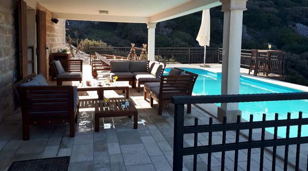 On a 10,000 m2 property, this stone house combines the pristine nature, the traditional look, the modern decor and the perfect way to escape from the city crowd. Within the house there are 4 bedrooms and 4 bathrooms, 2 kitchens, and the living room offers a wonderful view of the secluded coast and the magical sea. The look that fights with three large terraces is breathtaking, and besides the chaise lounges on which you can sleep, are equipped with dinner tables under the stars and coffee in the late morning, and a corner garniture for a glass of wine or juice after refreshing in a private pool of 9.8x3. 5 m. With each of the spacious terraces and the pool itself, there is a well-visibility space for children with sandbox and swings. A 8x15m pitch for beach volleyball, badminton and soccer offers a holiday with sporting fun and entertainment. Biking offers opportunities for exploring the natural environment. The barbeque dominating the central terrace delivers family lunch in a fun party.
