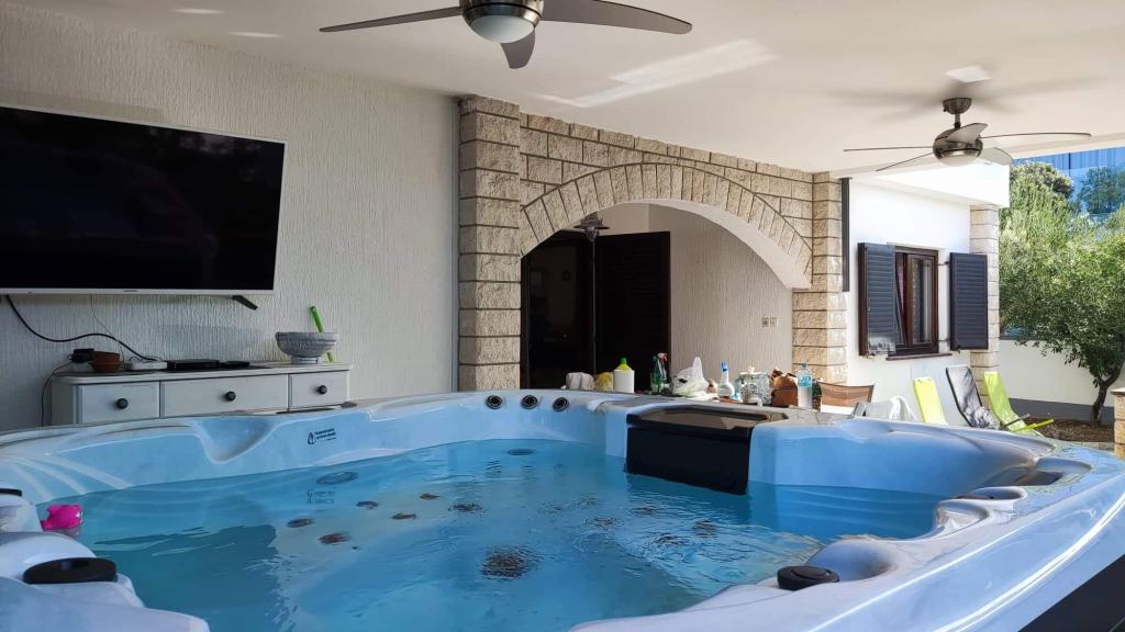The villa was renovated in 2022. A traditionally decorated villa surrounded by an oasis of greenery next to the sea, close to all the necessary facilities for a pleasant stay. Ideal for larger families or friends with children. Your pets are welcome in our home. Psi Kuća is not rented to a large group of young people. A quiet part of the settlement. Prohibited organization of celebrations and larger gatherings of persons who are not guests of the house. House Rules. There is a Jacuzzi on the terrace of the house. There is no pool because the house is by the sea. You are alone in the house without the presence of the host.