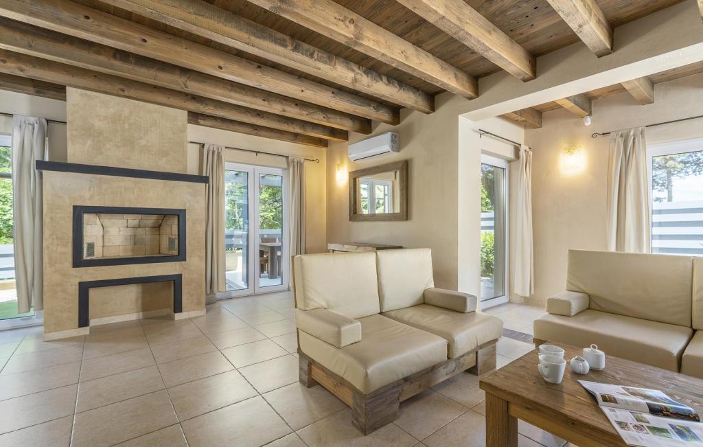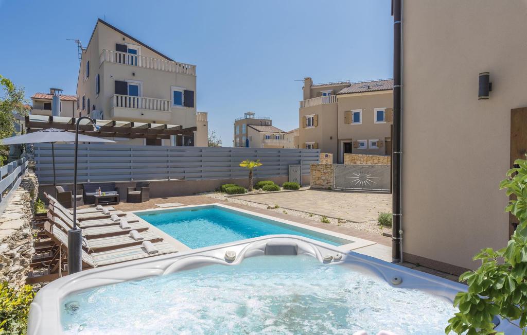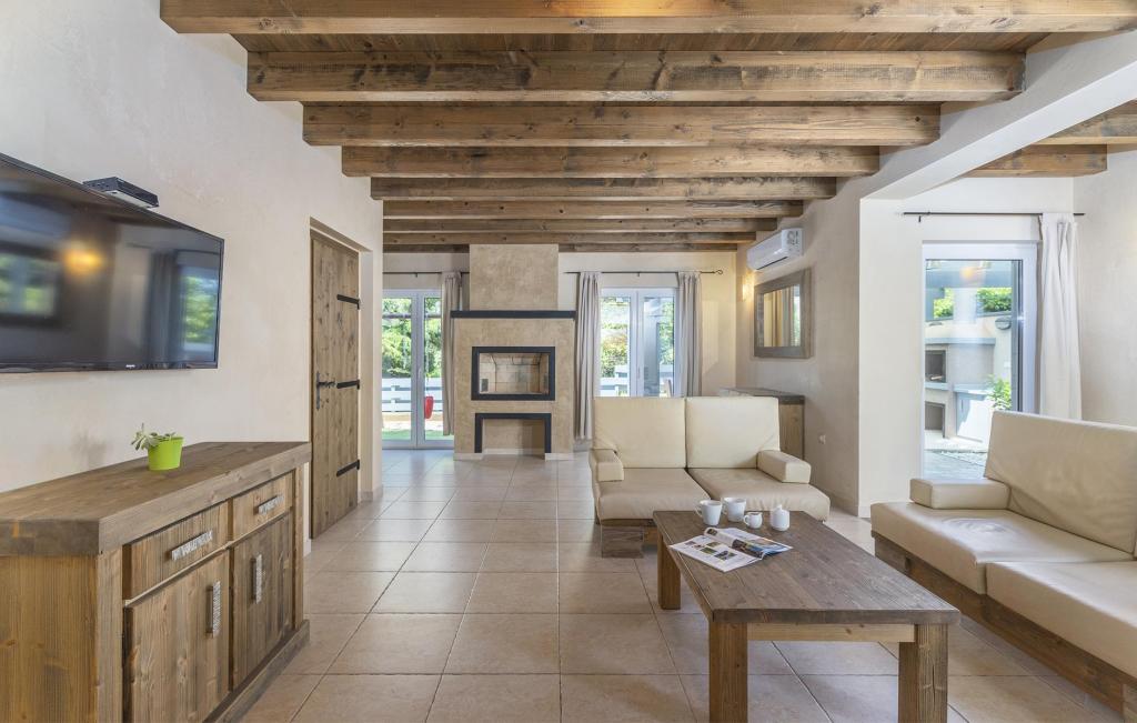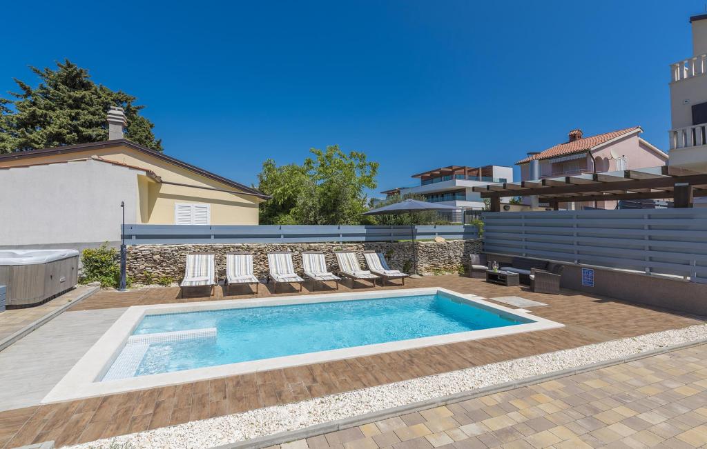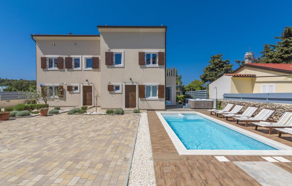 This spacious and comfortable holiday home is situated in a peaceful environment, in the tourist town of Premantura, one of the most popular destinations for summer holidays on the whole Adriatic, near the Nature park Cape Kamenjak, which is known for its beautiful seaside promenades that are dotted with coves with beautiful beaches. Besides the beautiful and comfortably furnished interior, special relaxation and enjoyment during the holiday will be provided by well-maintained land, with swimming pool and a lovely, covered terrace, with barbecue, perfect for socializing, with a glass of wine and specialties of this region. Next to the swimming pool, there is a whirpoll with heated water. On the ground floor of the house there is a kitchen with dining room, living room, and sauna with bathroom. On the upper floor there are six comfortable bedrooms equipped with air conditioner and LCDTV. The entire parcel is fenced and closed, so those who want peace and privacy will be fully satisfied. Premantura offers a varied range of opportunities for recreation and entertainment. It is often a destination for professional athletes, who train their abilities and strength here. So the visitors can also find recreation with football, beach volleyball, horse riding, tennis and a m
