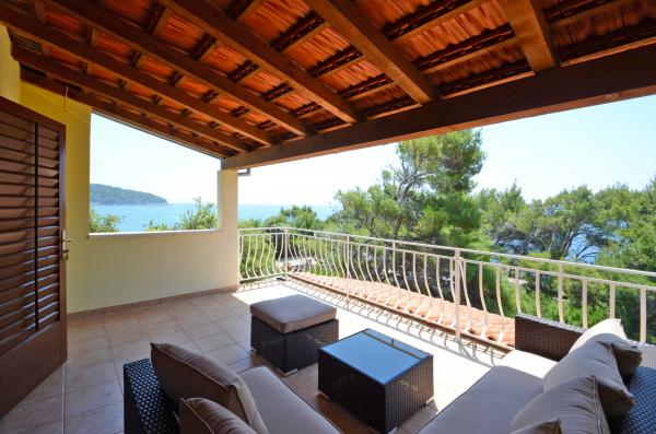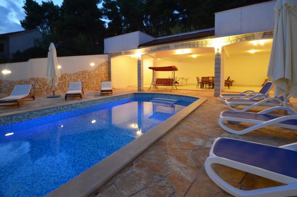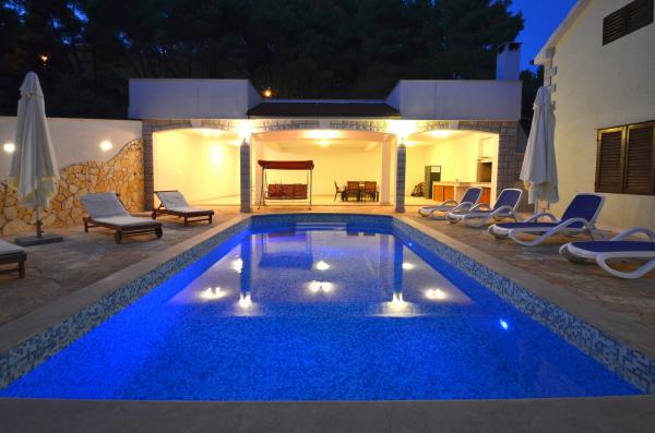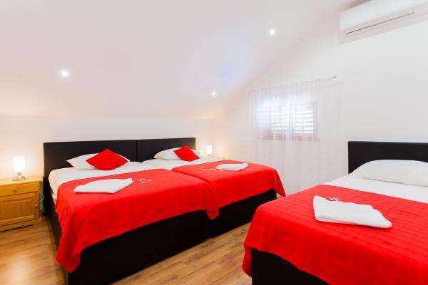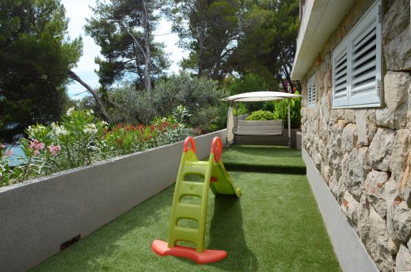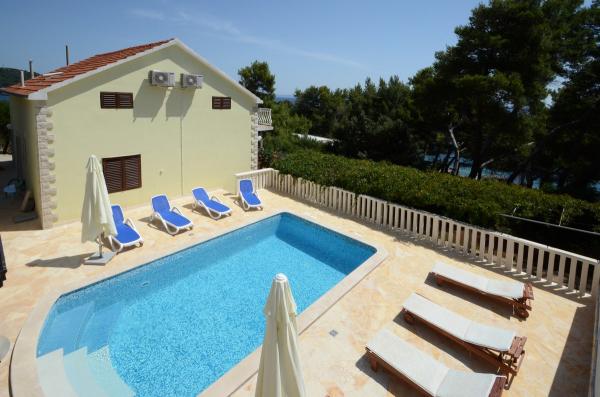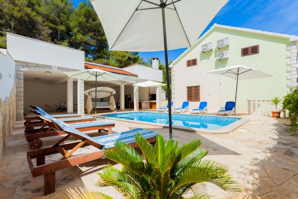 Villa Daria is located on the island of Korcula. Villa has 5 bedrooms, 4 bathrooms and can accommodate 11 people. The new entertainment facilities for kids are in front of the house. The whole house is acclimatized and has 230 m2 with terraces and sea view. Beside the pool is a barbecue with kitchen, table tennis. The villa has an absolute peace. For those who want to have total relaxation, enjoying long sunny days and clear crystal waters of the island of Korcula, our accommodation is the best solution to recover energy and vitality during your holiday in Croatia. The whole villa is equipped with air conditioning and is located less than 50 meters from the sea.
