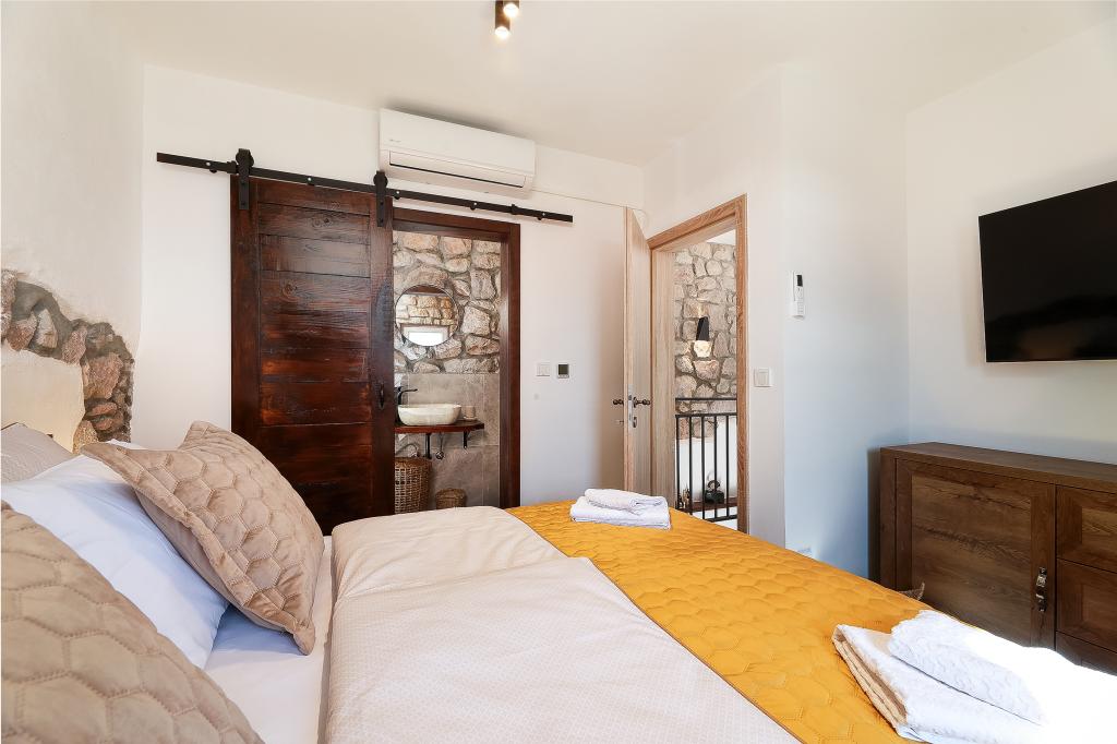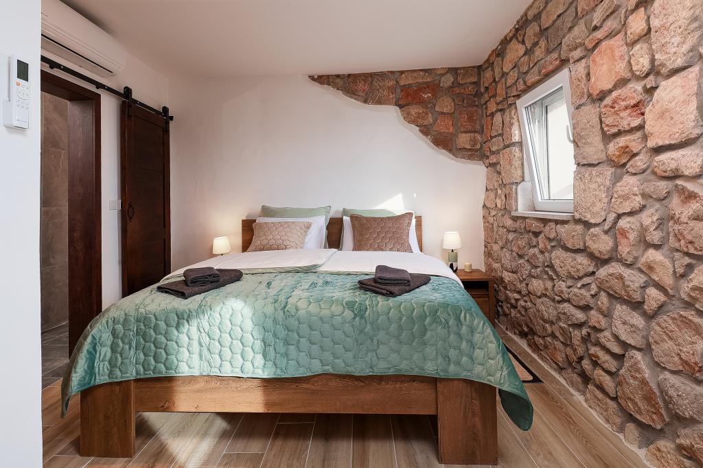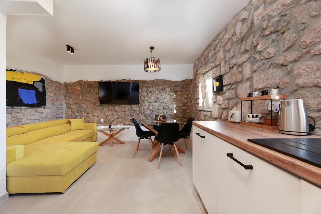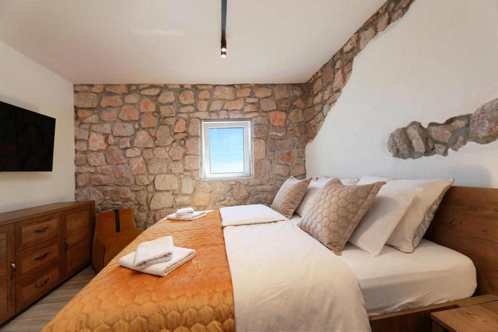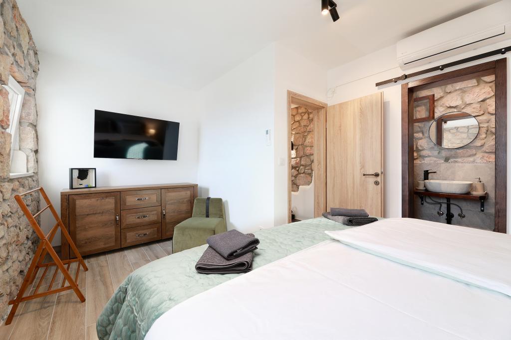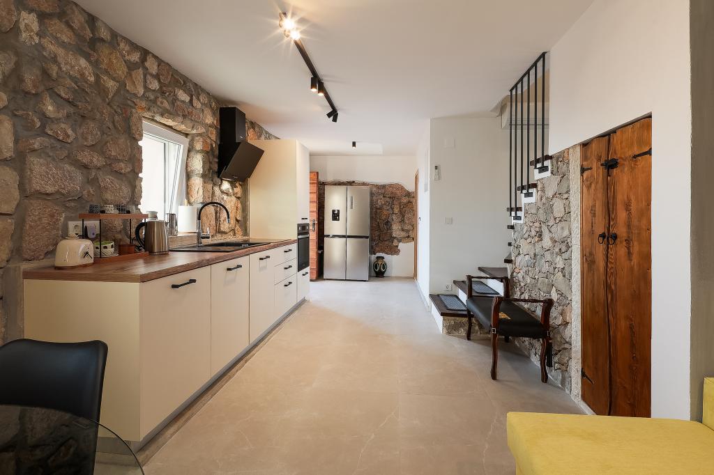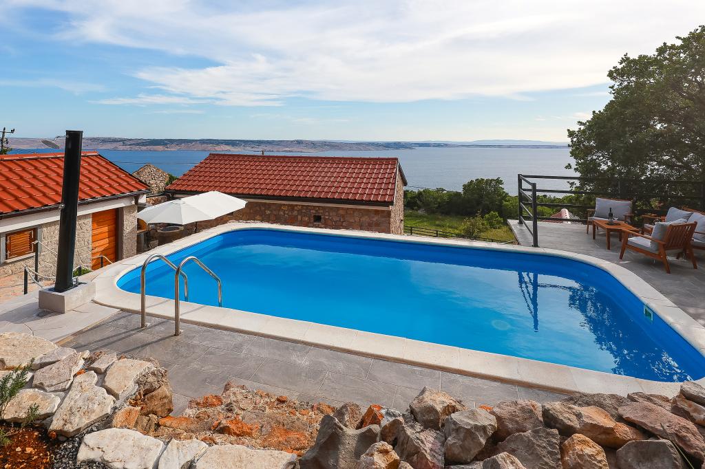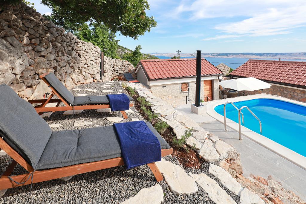 Welcome to Villa Ana, a unique holiday home that offers the perfect combination of natural surroundings, authentic architecture and modern comfort. Located in a quiet and secluded part of the Velebit Nature Park, this carefully restored 19th century stone house offers complete privacy, silence and spectacular views of the sea and the Kvarner islands – Pag, Rab, Lošinj and Ilovik. The house covers an area of 70 m² and is ideal for 4 people. It has two spacious bedrooms upstairs, each with its own bathroom, air conditioning and smart TV. On the ground floor there is a modern open-space living room with a fully equipped kitchen (dishwasher, oven, induction hob, microwave, coffee and tea maker, fridge with freezer), another bathroom and a storage room with a safe. Wi-Fi internet is available throughout the house. In the 340 m² outdoor area, guests can enjoy a private swimming pool, a sunbathing area with deck chairs and umbrellas, a tavern with table football and darts, and an outdoor fireplace for grilling.