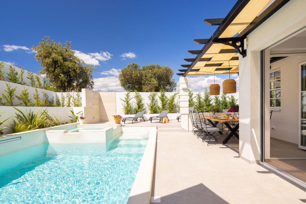 Welcome to our luxurious villa in Ražanj – ideal for families, groups, or remote workers seeking a memorable getaway! What we offer: 4 comfortable bedrooms and 4 modern bathrooms + 2 guest toilets Cozy living room with 2 fireplaces and elegant dining area Traditional wood-fired oven for authentic meals Heated pool and spacious garden for relaxation High-speed, reliable Wi-Fi – perfect for working remotely or streaming Only 100 meters from the crystal-clear sea Additional amenities: Free Wi-Fi & parking Air conditioning Family-friendly environment Close to local restaurants, cafes Why book with us? Enjoy privacy, luxury, Dalmatian vibes, and a seamless connection for work or leisure – the perfect holiday experience!