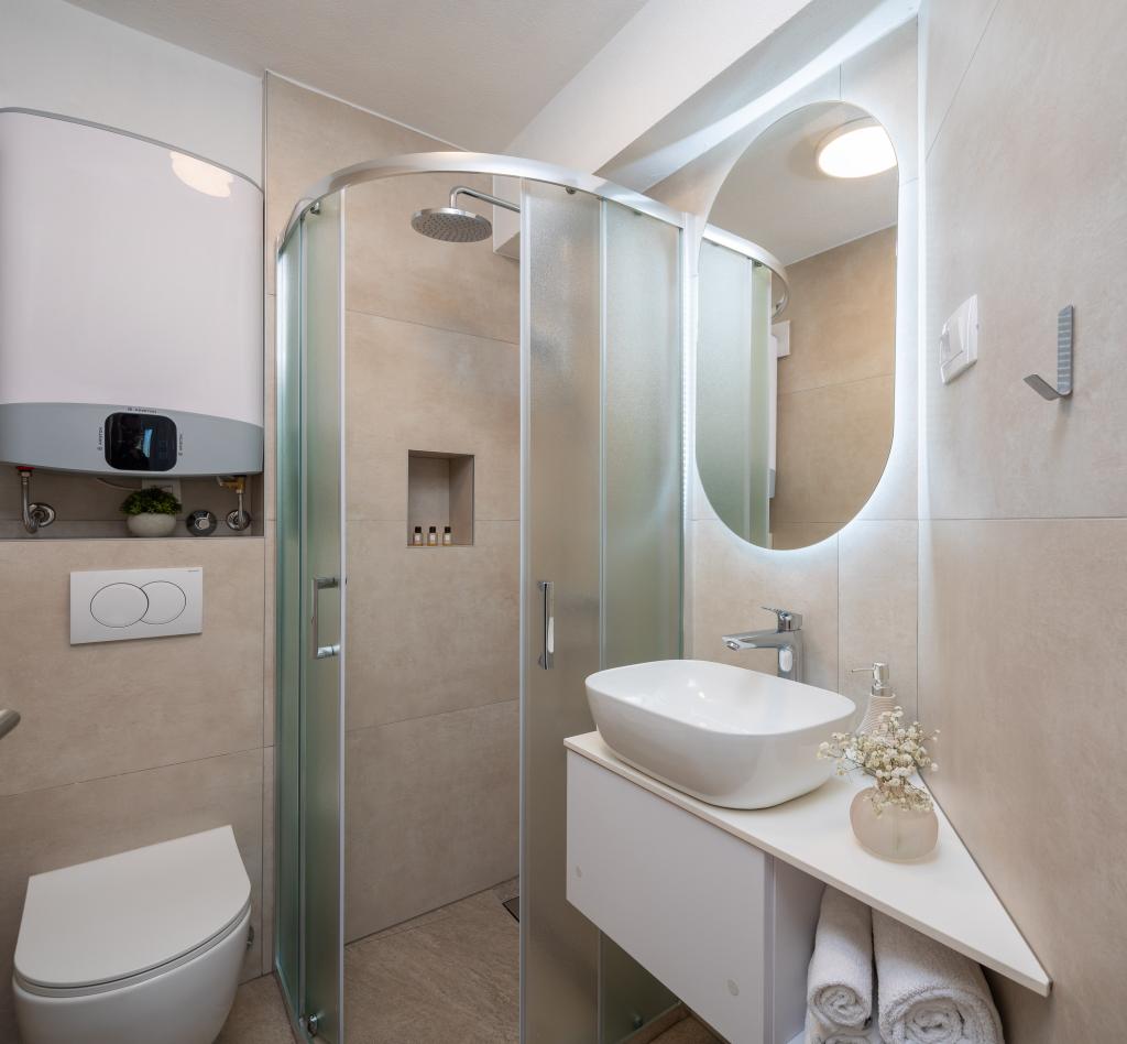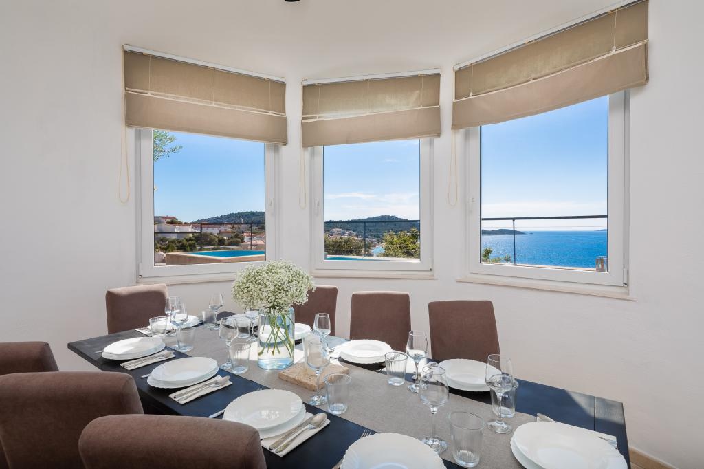 We have been to Marija's a few times and every time we look forward to the peace and quiet. The highlight is the view. In the morning with coffee, during the day while sunbathing or in the evening with the most beautiful sunsets. We can't get enough of it. The two pools, the playground and the outdoor grill are other special features that we really appreciate. The facilities are top-notch and a lot of effort has been put into making your stay as comfortable and relaxing as possible. The rooms are large and furnished to a high standard. Marija and her family are very friendly, warm-hearted and helpful. We always enjoy coming back and can highly recommend a stay here for families with children of all ages. The beach and the small town are within walking distance. Everything you need is nearby. Trips to Trogir, Split, Promosten or Sibenik are highly recommended. You can also rent boats or book boat trips at the small harbor in Razanj.