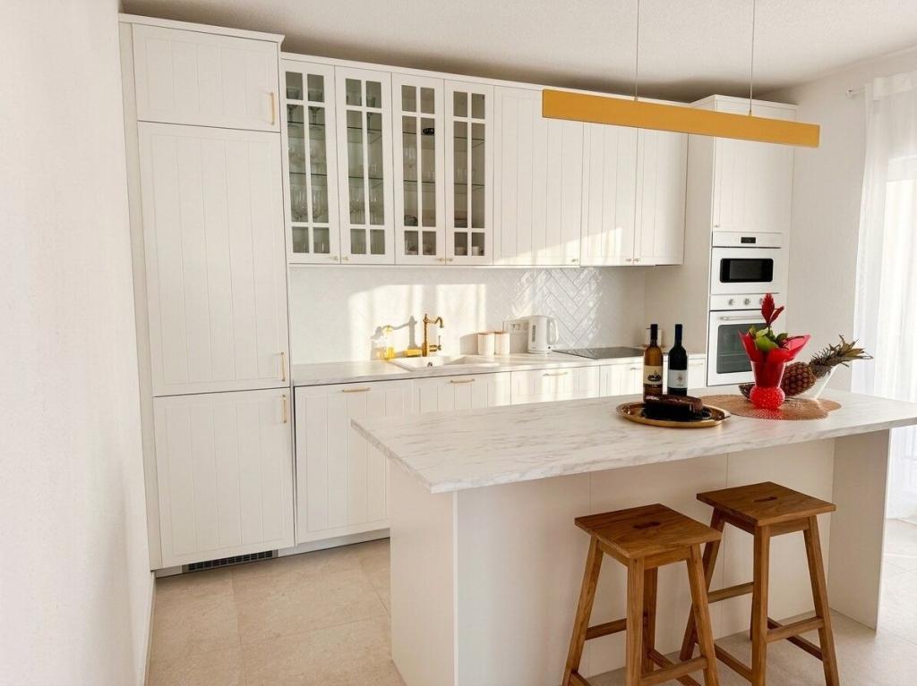 Residential tax is included in price.This elegant villa offers a perfect blend of comfort and style across two spacious levels. It features four beautifully appointed bedrooms—two conveniently located on the ground floor and two on the upper level—along with three modern bathrooms. The ground floor boasts a fully equipped, stylish kitchen and a welcoming living area, ideal for relaxing or entertaining. Upstairs, you’ll find a generously sized terrace complete with a comfortable lounge area and sunshade, perfect for enjoying warm evenings or soaking up the views. The outdoor space is designed for both relaxation and socializing, featuring a private swimming pool with sun loungers, a cozy firepit seating area, and a large outdoor dining table that comfortably accommodates up to eight guests.