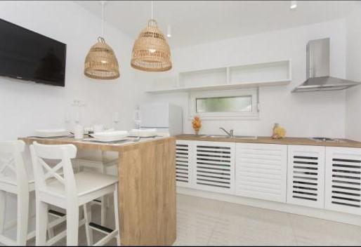 Beach house ribica is a perfect holiday rental located in Brodarica, little place 5 km from Sibenik. It can accommodate 4/5 persons and has area of 45m2. There are 2 bedrooms with 2 queen size beds and 2 separated bathrooms. Beach house Ribica has fully equipped kitchen with dining and living room area. The whole house is air-conditioned, has free wi-fi, Flat screen SAT/ TV, free toiletries, barbecue, private parking and terrace with sunbeds overlooking the sea.