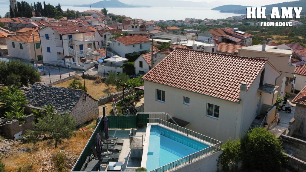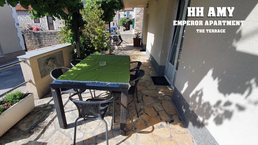 Holiday house Amy consists of two comfortable apartments, so you have full privacy and space for up to 8 people. The Emperor apartment is located on the ground floor and the King apartment is on the first floor. Each has a separate entrance, kitchen, bathroom and toilet and are fully equipped for your pleasant stay. Each apartment accommodates 4 guests, and each has 100m2. King apartment (100m2) is located on the first floor of the house and has a large terrace and balcony, two bedrooms, bathroom, toilet, large living room. It is intended for five people. Emperor apartment is located on the ground floor of the house (100m2) and consists of a large living room, kitchen, two bedrooms, two bathrooms. Slatine is a small fishing and tourist town on the Dalmatian coast, on the northeastern side of the island of Čiovo, 8 km away from Trogir. The island of Čiovo is recognizable by its rich vegetation and rocky and pebble beaches.
