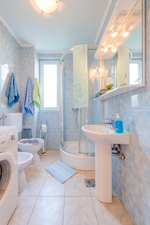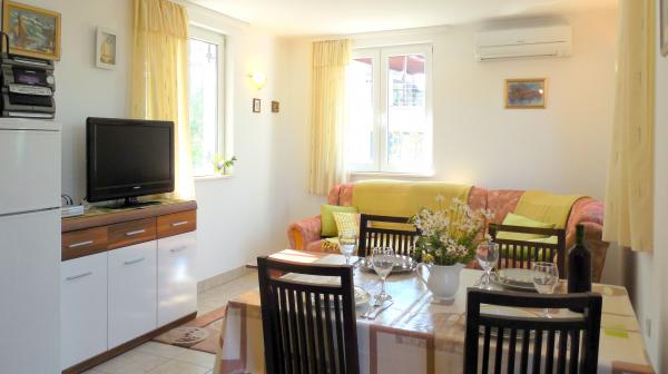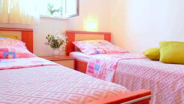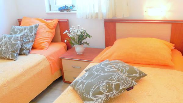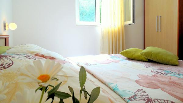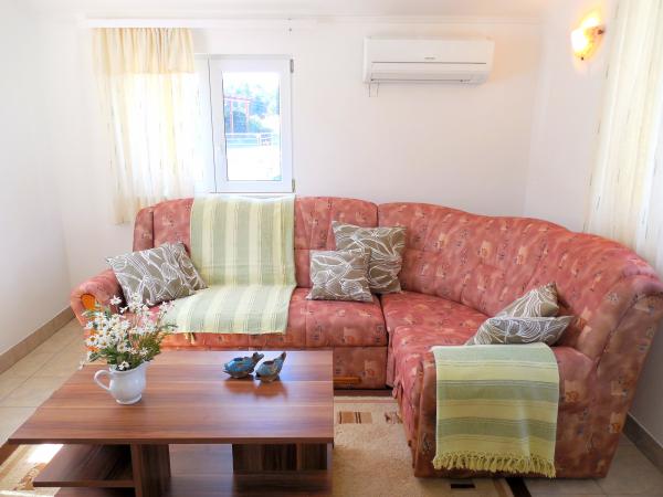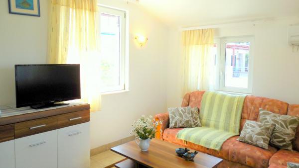 This beautiful sunray villa with two apartments warmly invites you to enjoy your vacation. Both apartments stretch over 57 m² of magnificent white villas by the sea. In the brightly decorated holiday home you will find two bedrooms with double bed and two twin bedrooms. The living room is open-plan, with dining area, large sofa bed for one more, satellite TV and stereo system and leads directly to the furnished terrace: a nice quiet place in the shade in the hot summer days. The fully equipped kitchen has everything ready to give you and your family the joy of cooking. The bathroom has a shower, toilet and bidet, and a washing machine. Vila Sunray is rented only in whole. These prices are for the whole house, meaning A1 and A2 together.