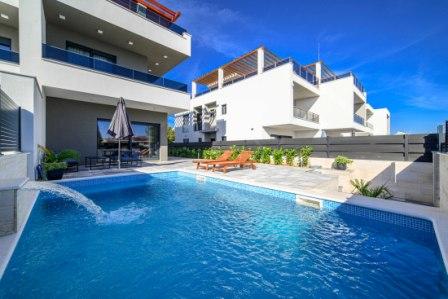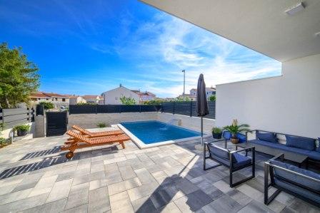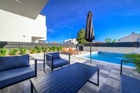 Villa Mira is located in Srima in Šibenik-Knin County. Guests have access to a terrace, private pool and free WiFi. This villa has 4 bedrooms, a living room and a fully equipped kitchen. It also offers air conditioning, a TV and 3 bathrooms with a dishwasher and a washing machine. Free parking, barbecue facilities and a recreation room are available. Vodice is located 3 km. from the Villa, and Sibenik 12 km. Zadar Airport is 66 km away, NP Krka with beautiful Skradinski Buk is 15 km away.