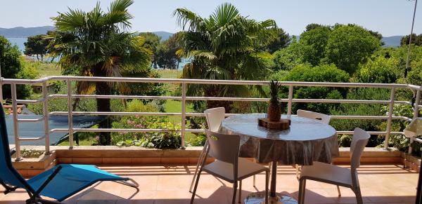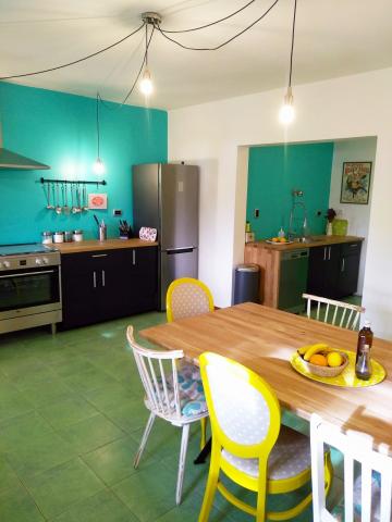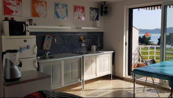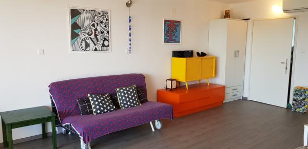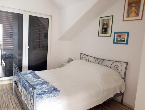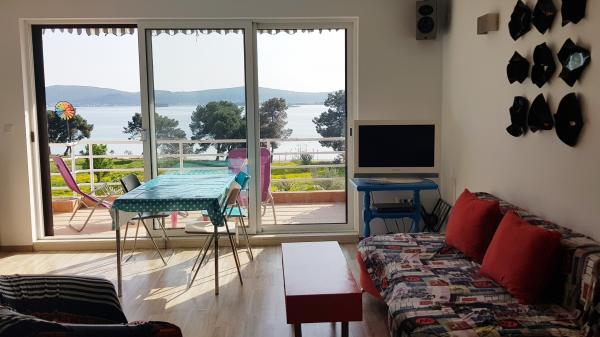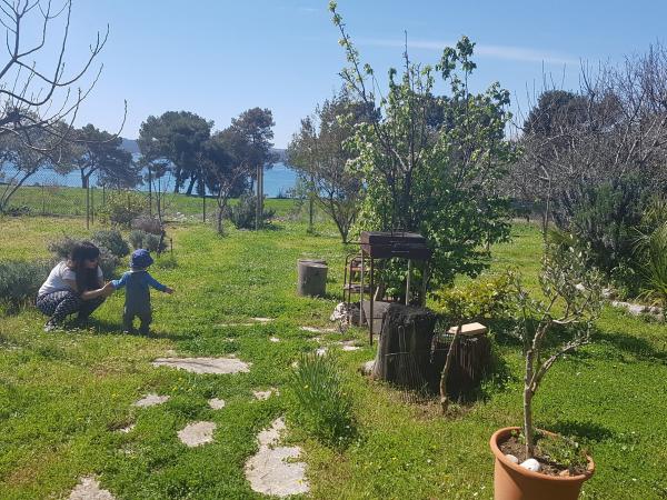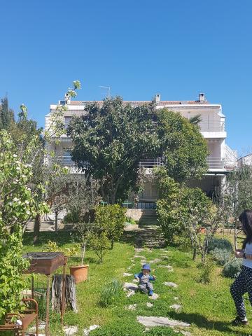 Completely and modernly equipped house with 2 separate apartments and a common kitchen and garden. Each apartment has a kitchen, air conditioning and a phenomenal sea view. Ideal for two families because it provides privacy, but also a space for socializing. The house has 3 bathrooms, dishwasher and washing machine. The garden is spacious and beautiful. One apartment is 4 2 and the other 2 2. Secured free parking for 2 cars. Note: The house is not detached. For children in the garden we have a small slide and a swing, and we have a baby cot and a feeding chair.