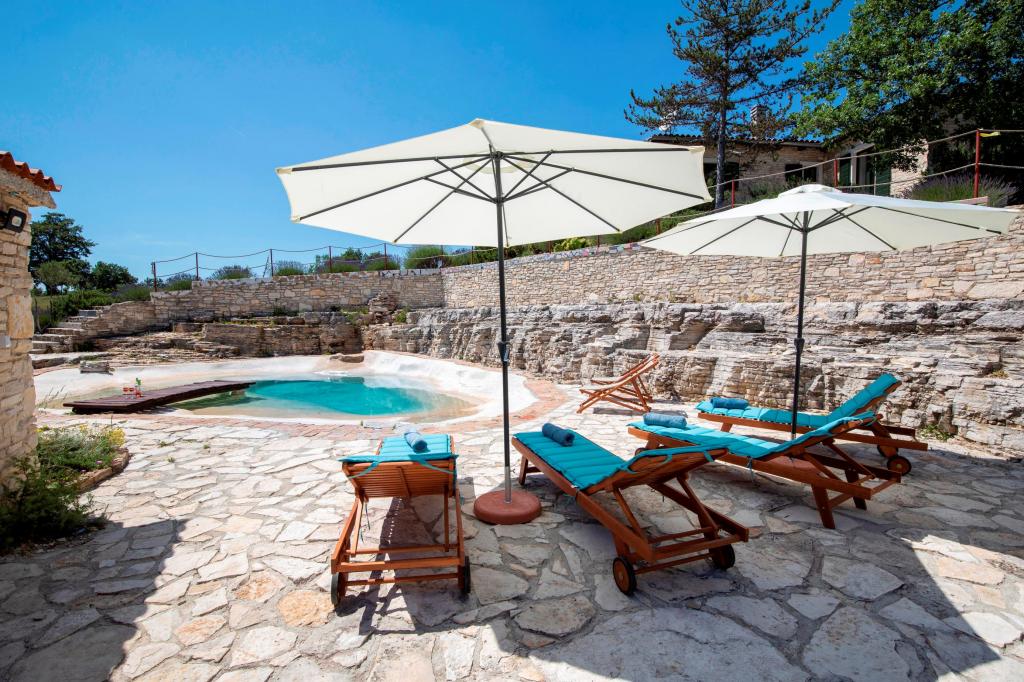 Villa Eternelle is located in Juršići, between the medieval towns of Svetvinčenat and Vodnjan, and offers a private pool and a 10,000 m2 garden. The distance from Pula and the Brijuni National Park is 20 km, and guests can enjoy the pristine and untouched nature. It offers private parking on the garden and free Wi-Fi. The villa has two bedrooms, a kitchen with a refrigerator, coffee maker, dishwasher and washing machine, and an oven. Each room has its own bathroom. Wake up in the morning and enjoy breakfast on the terrace immersed in nature, from the gentle murmur of the waterfall in the pool to the view of butterflies above the lavender bushes. Close your eyes and feel the scents of Mediterranean lavender, immortelle, rosemary, and sage. During hot summer days, cool off in the pool or seek shade in the cave by the pool. Rovinj is 31 km from the villa, while Poreč is 44 km away and Pula Airport is 15 km away.