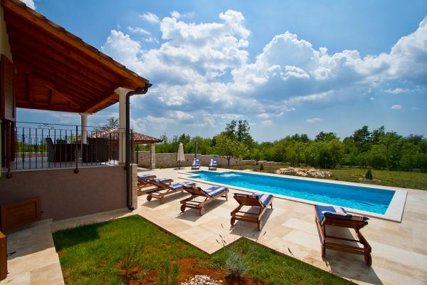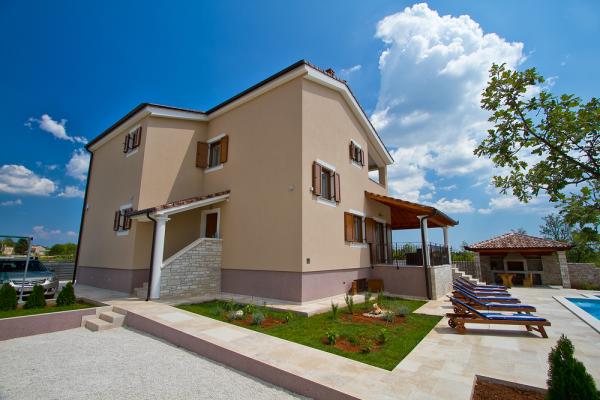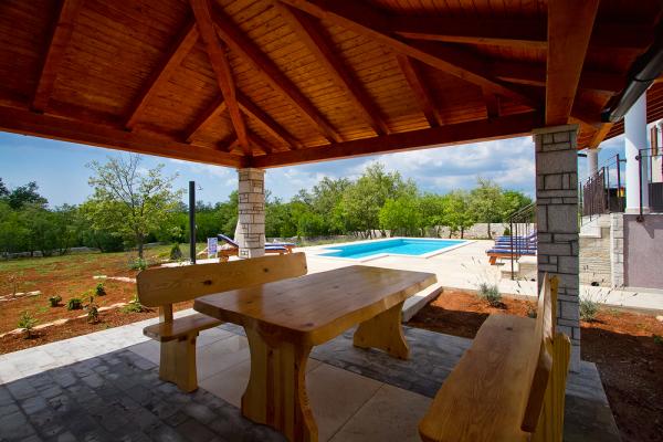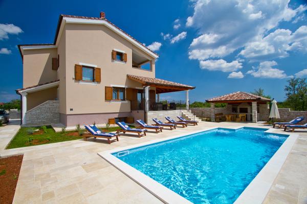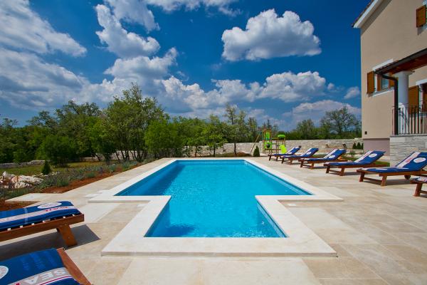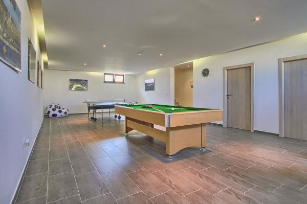 In Stokovci, a small village, is located this newly built, luxurious and comfortable holiday home of 290 sq.m, with pool of 36 sq.m on plot of 2000 square meters surrounded by a stone wall. Your holiday house: 3 floors, 5 rooms (4 bedrooms), 5 bathrooms, 290 sqm, 10-11 people. Air conditioning, alarm, an outside staircase to the garden. Cellar (60 sq.m), room for socializing: table tennis, billiards, electronic darts, table football, elliptical trainer and fitness Ground floor: Living room (50 sqm) with sitting area - sofa bed for 2 persons, dining area (10 places), LED SAT/TV, CD, Playstation 3, access to the terrace (30 sqm, garden furniture, 1 table, 10 chairs), bedroom (25 sqm) with double bed and extra bed, LED TV / SAT, air conditioning, private bathroom with shower, wash basin, toilet and bidet, hair dryer. Fully equipped kitchen. Extra bathroom with shower, sink and toilet, hair dryer. First floor: Bedroom (25 sqm) with double bed and extra bed, LED SAT/TV, air condition, b