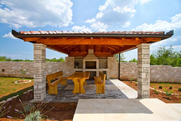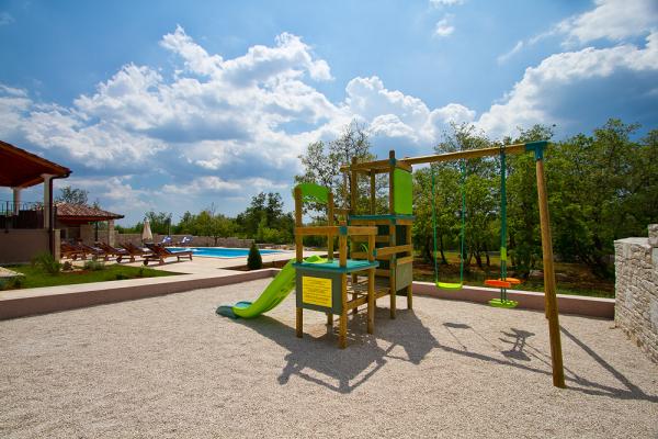 Interior Non smoking home, long term renters welcome Suitable for children and the elderly Family friendly accommodation Baby Cot on request Without neighbors Pets: Allowed Wi Fi Surroundings Parking place - 4 place (two covered) Covered barbecue with table Large garden surrounded by stone walls Children playground Quality wooden deck chairs (8) with umbrella Garden solar shower Furniture made of rattan for 4 people Outdoor covered terrace with a garden table and chairs (12) Balcony with partial view on the sea Four bikes available