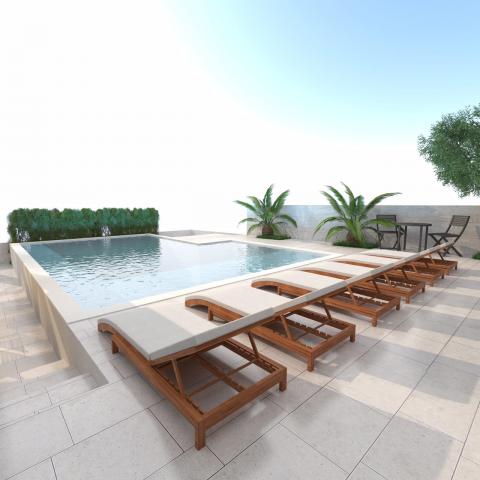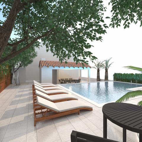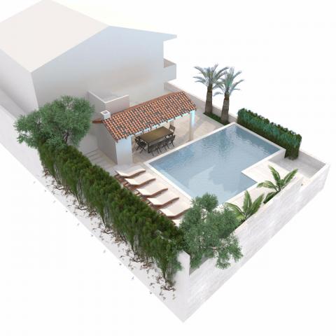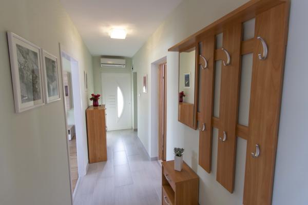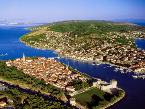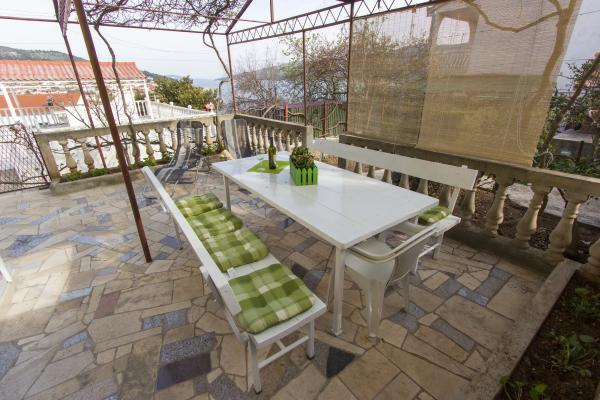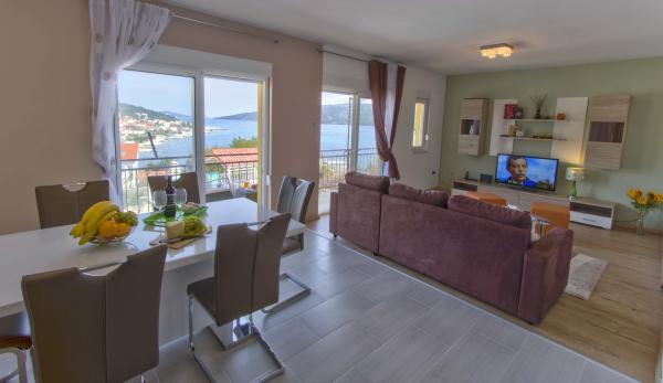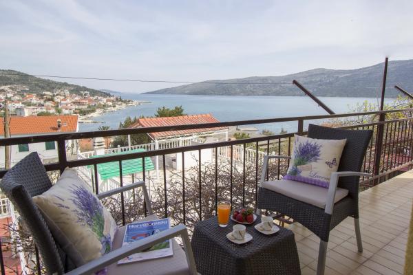 Holiday house located 100 m from the sea with panoramic views of the island and the peninsula. Just below the house is a beach. Terrace, balcony and garden with sea view, barbecue. It has a summer kitchen on the ground floor and an extra toilet. The house is completely renovated, consists of a bathroom, two double bedrooms and a large living room with sofa bed for two people, a kitchen and a spacious dining and wireless internet throughout the property, cable TV, CD player, DVD player, telephone, air conditioning, washing dishwasher, merchandise, parking and a garage in the building. House because from Trogir 10 km, from Split 30 km. Split Airport is 14 km.