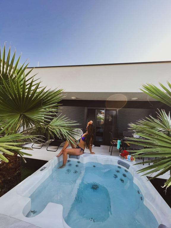The house is newly furnished, 100m2 has 3 bedrooms, 2 with box beds, the third room with two separate beds, kitchen with all appliances, dishwasher, oven, stove, refrigerator with freezer, one bathroom, and outdoor shower, Jacuzzi in the yard , secure parking, 350m to the sea, 350m to the center, all amenities are in the immediate vicinity, you can visit everything without a car, neighbors are in the immediate vicinity, the guest is expected to observe house rules. The host does not live in the same house, the host takes care of the quality of the water in the jacuzzi