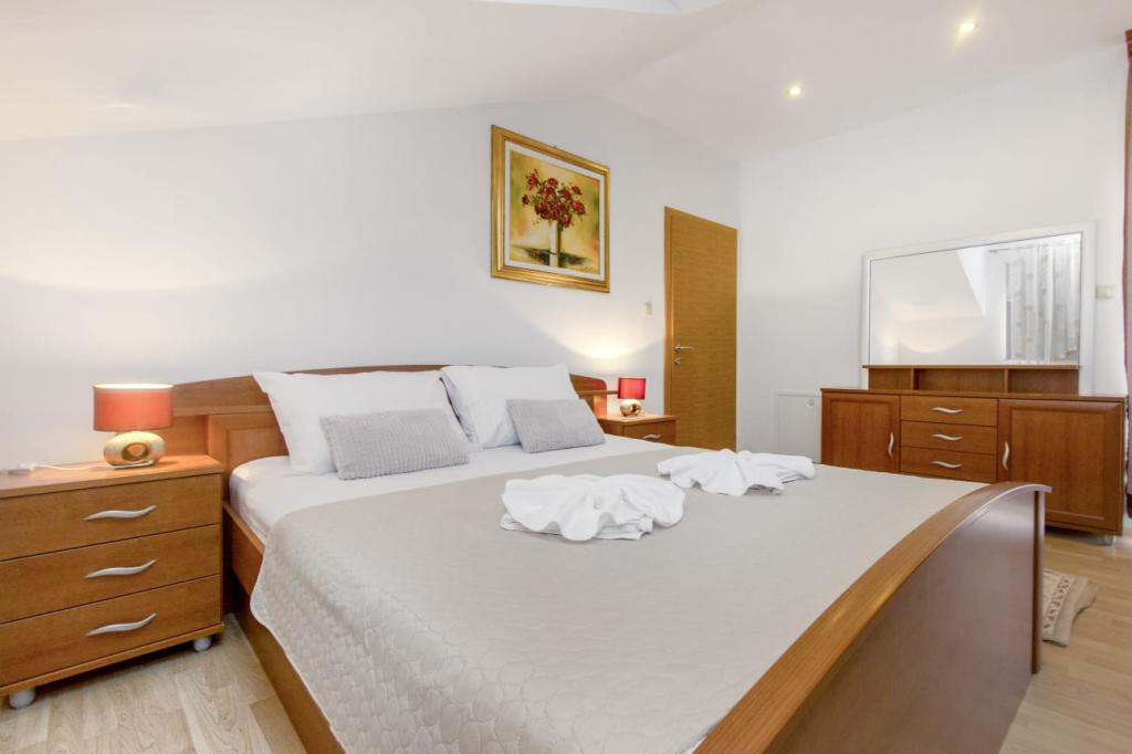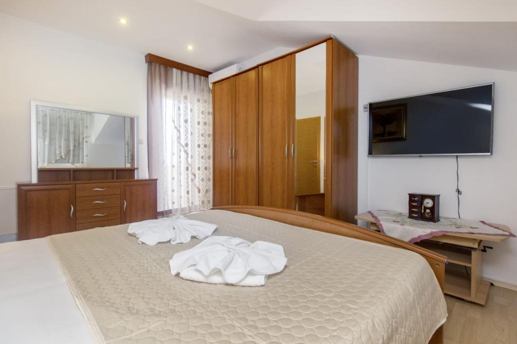 Holiday Home Sea is located in Vodice, 600 meters from Male Vrulje Beach and 1.3 km from ACI Marina Vodice. It offers air-conditioned accommodation with free WiFi, a shared lounge and a garden. Free private parking is available, and in the surrounding area guests can have fun with activities such as windsurfing and diving with bottles or with a mask and snorkel. This holiday home features 4 bedrooms, a flat-screen TV with satellite channels, an equipped kitchen with a dishwasher and a microwave, a washing machine, and 2 bathrooms with a shower. A barbecue and a terrace are available in the cottage. Zadar Airport is 50 km away, and Holiday Home Sea offers a shuttle service from/to the airport for a surcharge. The distance in the object description is calculated using OpenStreetMap