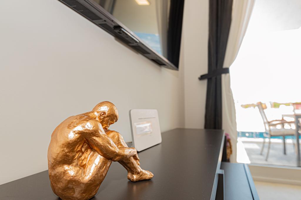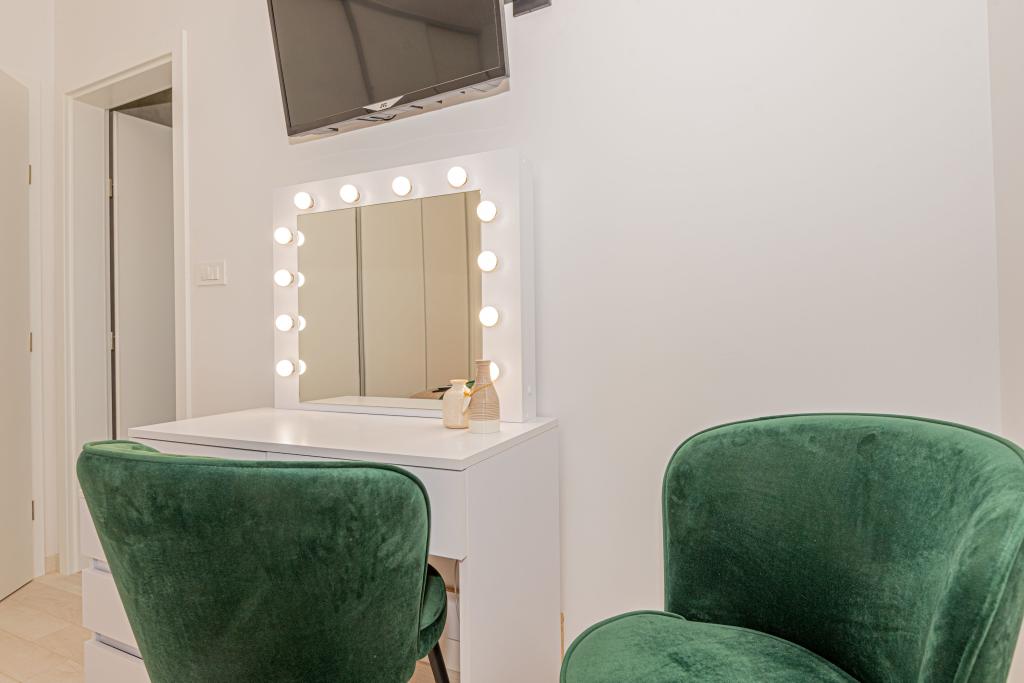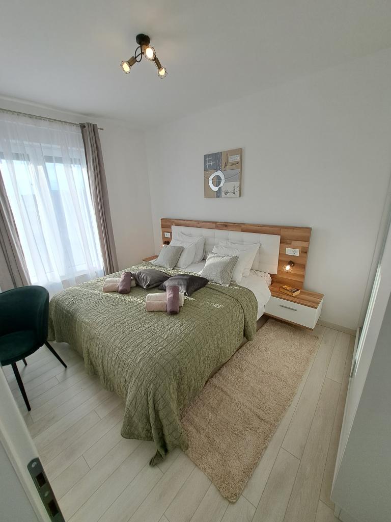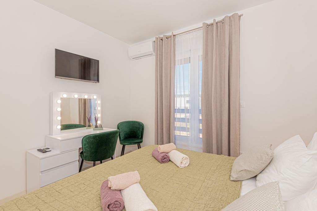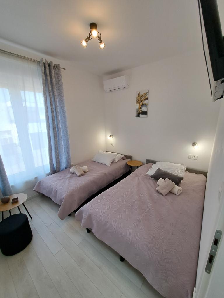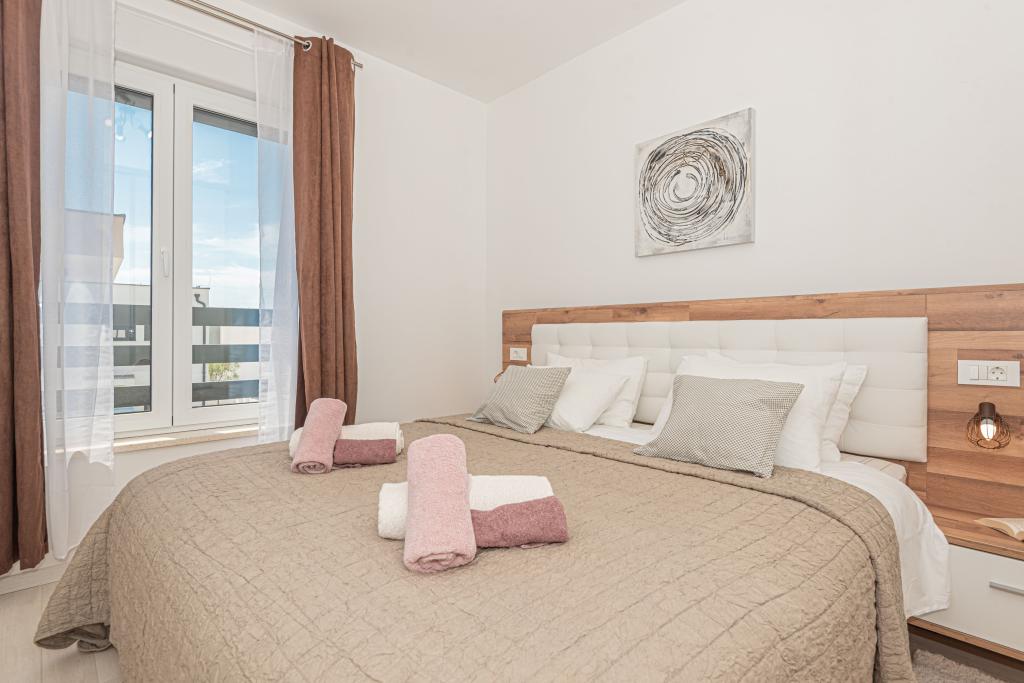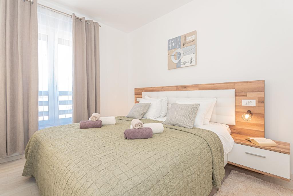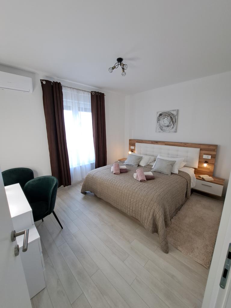 A new, fully furnished villa with a swimming pool in a quiet corner of the town of Vodice, about 1 km or a 15-minute walk from the center, the beach and other facilities. The villa has a swimming pool 7x3 m, 1.5 m deep, heated, next to the pool there are deckchairs, a garden swing and furniture for resting in the gazebo. The backyard has an outdoor grill and a dining table. The house has three rooms on the first floor, a master bedroom with a bathroom and two rooms with a bathroom in the common corridor. The beds in two rooms have dimensions of 180x200 cm, and the third room has separate beds, 90x200 and 120x200. All rooms are equipped with TV and air conditioning. Bed linen and towels are available to guests. On the ground floor, the kitchen is fully equipped with dishes, a toaster, a stick mixer and an electric juicer for citrus fruits, as well as a filter coffee machine. The kitchen has a dishwasher, fridge and freezer, oven and microwave. The living room has a corner sofa and a TV with internet and satellite channels.