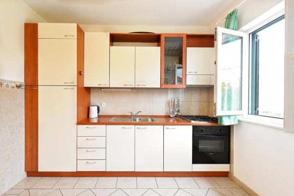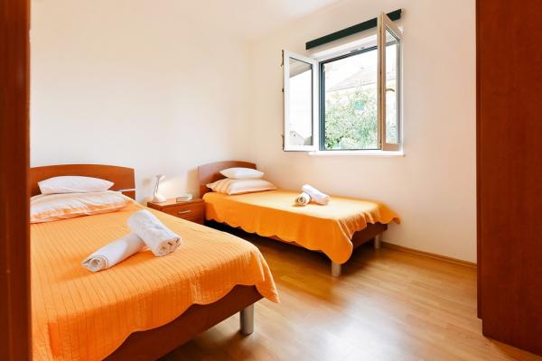 Villa Iva is a beautiful house 400 m from the sea, in Vodice (Dalmatia). The house is located in a quiet street, away from the road, the doors can be closed so you do not have to be afraid of children. Surface of the house: 85 m2 Surface area: 300m2 2 bedrooms, 1 bathroom. In: - kitchen (fully equipped); Table and chairs; - living room with two couches (couch can be a bed for 2 persons); - 2 bedrooms (one room has a double bed and the other with 2 single beds); - large bathroom (shower). Equipment: air conditioning, TV, DVD / CD for watching films and cartoons; Iron and ironing board; washing machine.