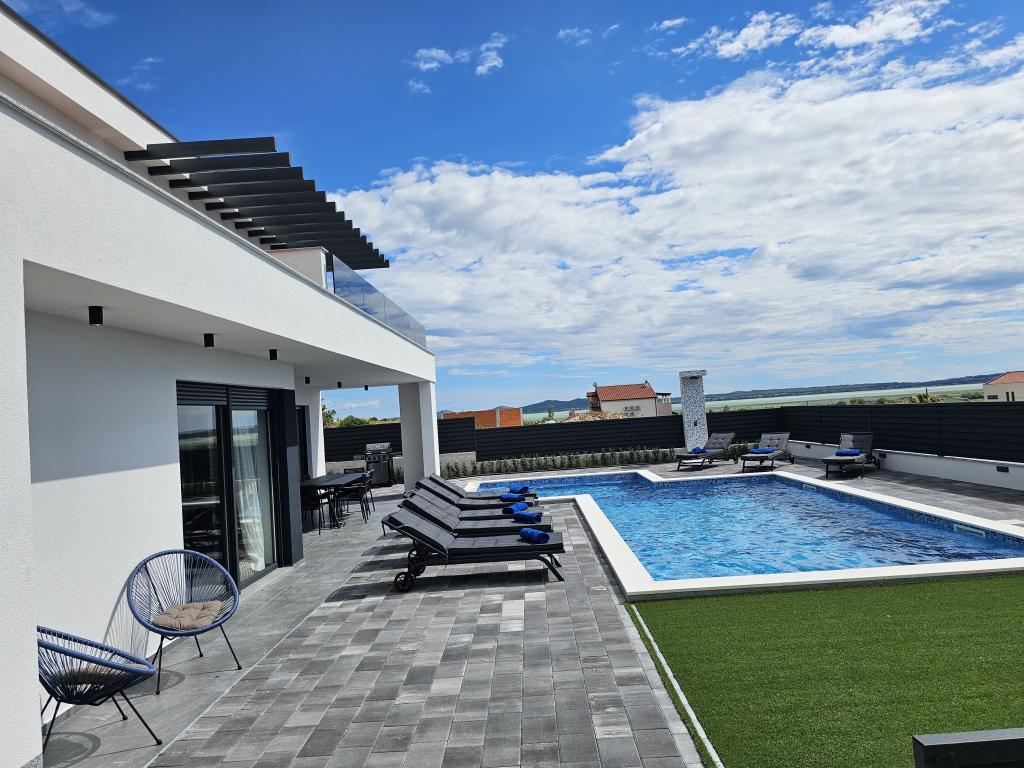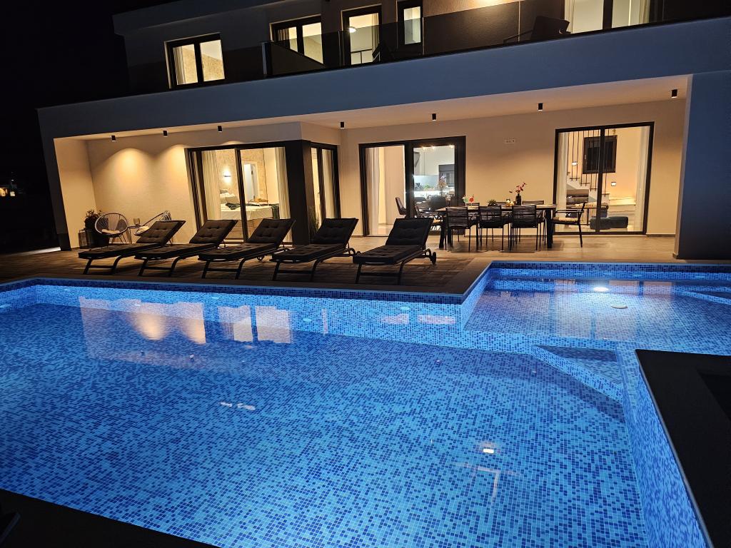 Welcome to Villa Bašić. A beautiful oasis of peace, located in the village of Vrana near Pakoštane. Located in the heart of the nature park. It offers a panoramic view of Lake Vrana. The exterior of the villa offers a heated swimming pool with a whirlpool. Each room is equipped with air conditioning and a TV, which provides additional comfort during your stay. Villa Bašić offers a spacious and elegantly decorated interior spread over two floors. Fenced plot, garden furniture. outdoor toys. outdoor shower. number of deck chairs 8