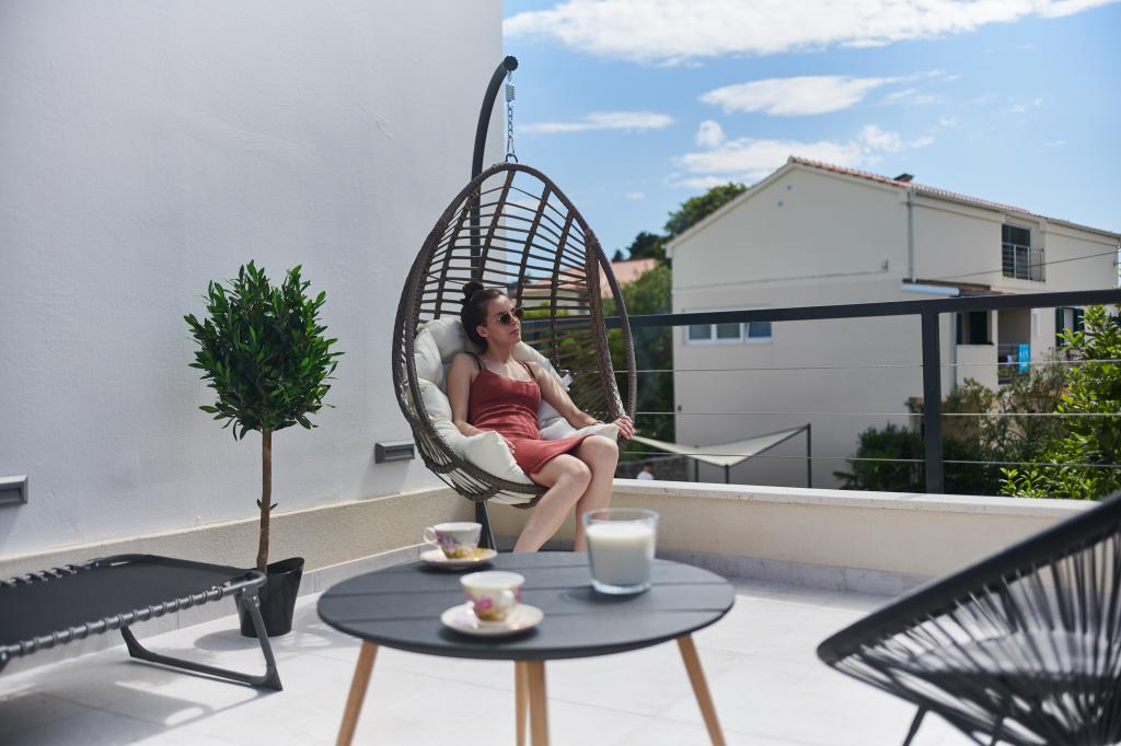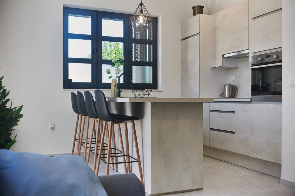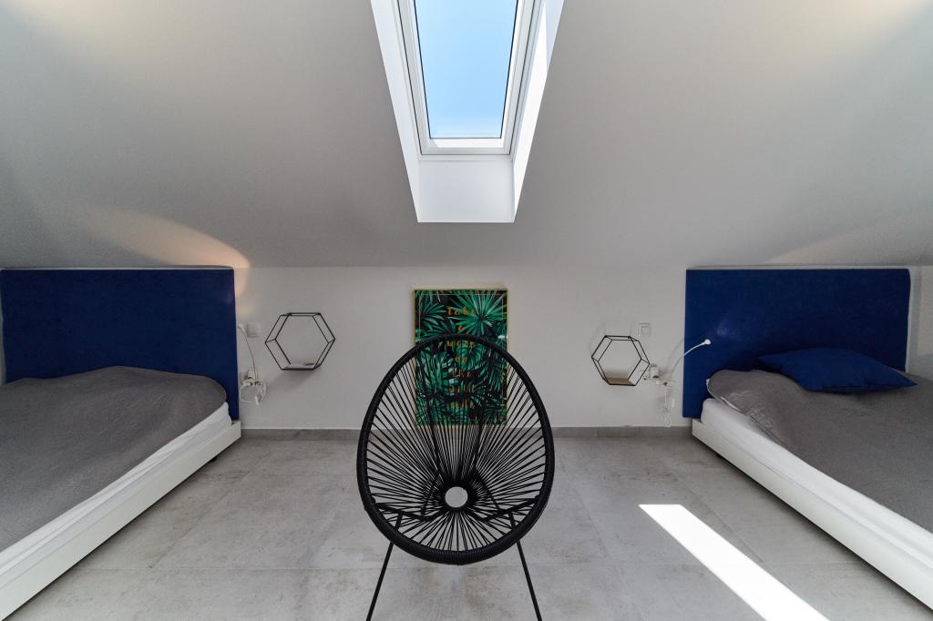 Villa Baronessa is a modern villa in the center of Zadar, located in the best location - close to Kolovare beach (2 minutes walk). The villa has 70 m2 and 2 bedrooms with a total of 3 double beds (maximum capacity is 5 persons). The distance from the big SuperKonzum, bus and train station is 5 minutes on foot so you do not need to use the car at all as everything is very close. The largest hospital in the region is only a 5-minute walk away. You will enjoy the terrace which we have arranged as a lounge bar, you can sunbathe on it all day and enjoy watching the stars in the evening.